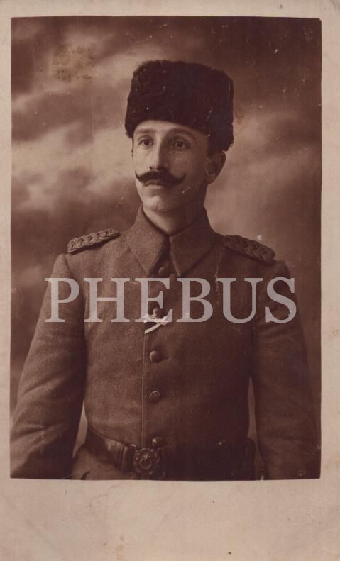 Kalpaklı Osmanlı subayının stüdyo hatıra fotoğrafı, 9x14 cm...