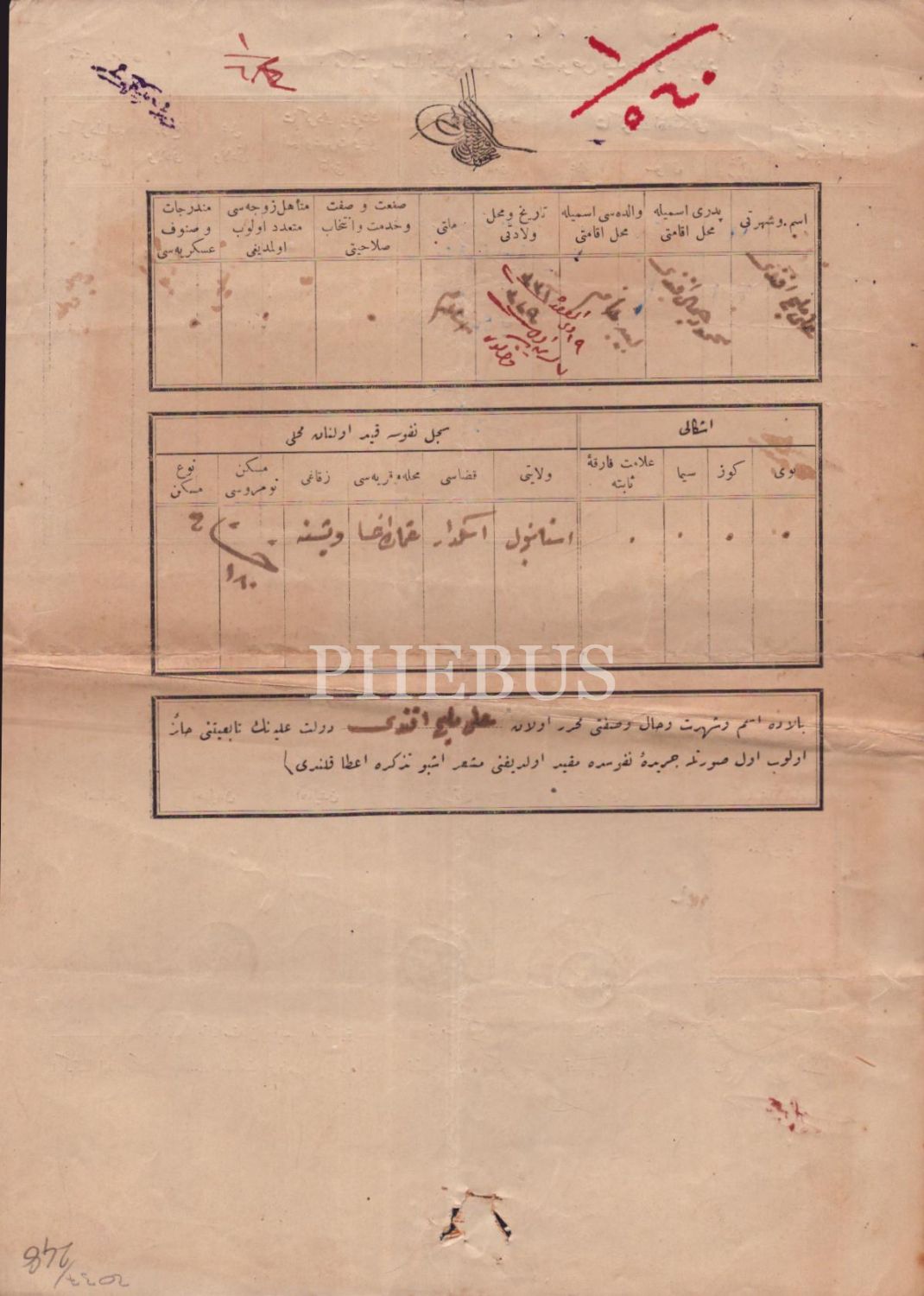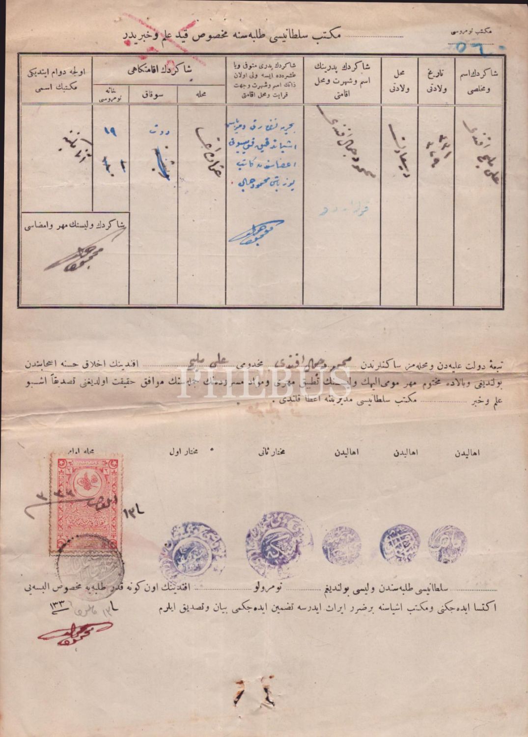 1326 tarihli Ali Melih Bey´in okul kayıt belgesi, 21x29 cm...