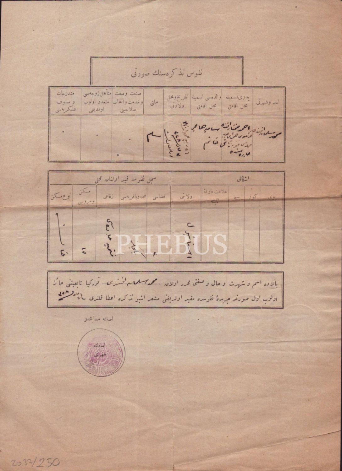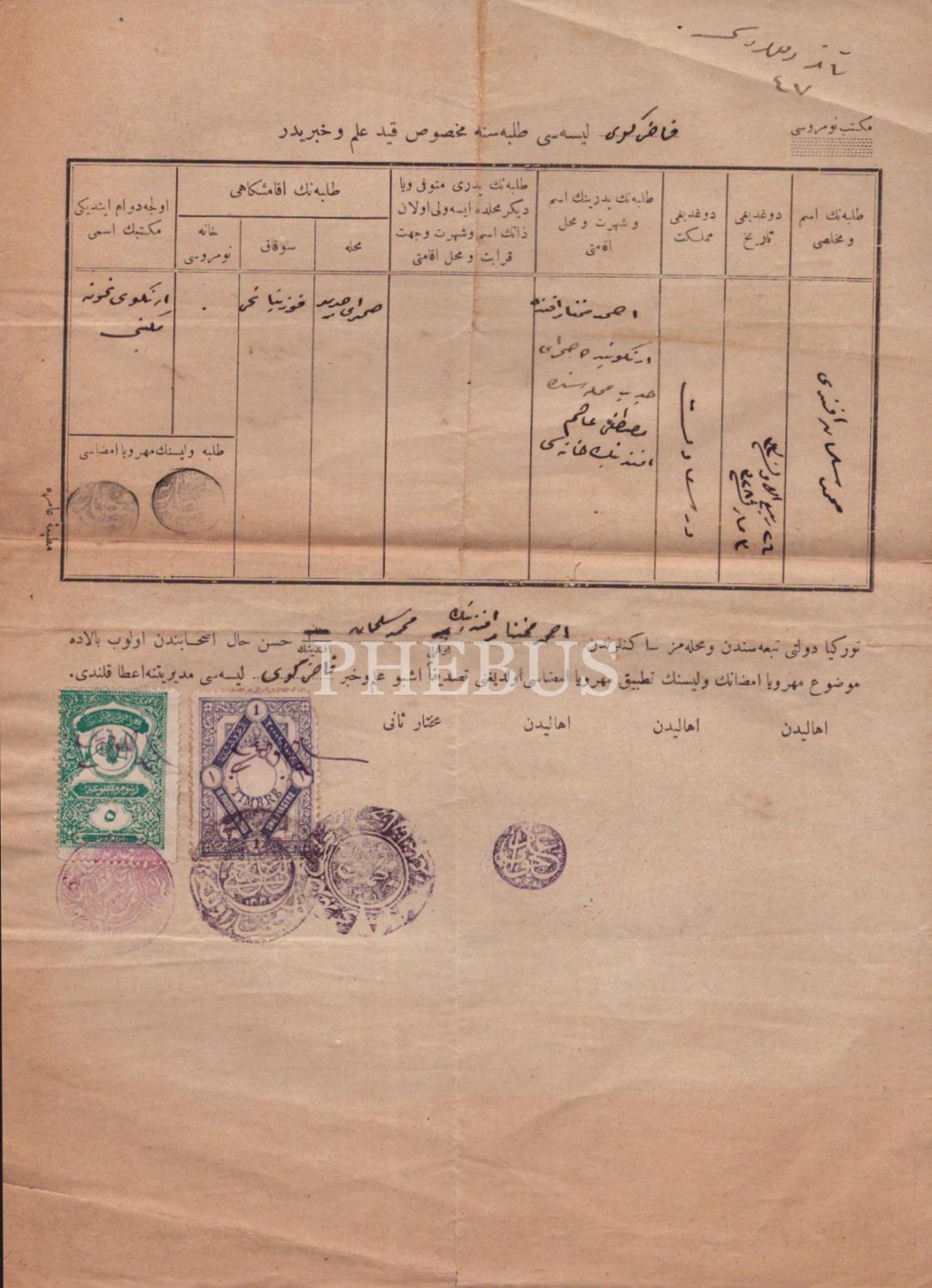 Mehmet Selman Efendi´nin Kadıköy Lisesi´ne kayıt belgesi, 20x28 cm...