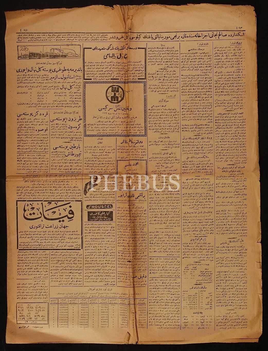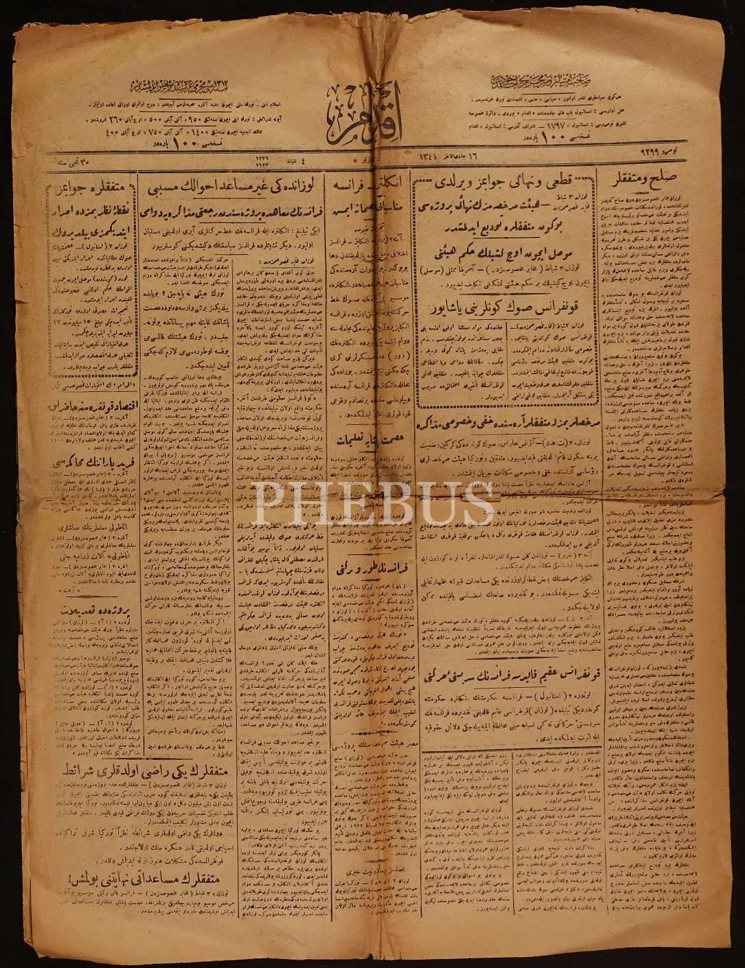 4 Şubat 1923 tarihli "Lozan´daki gayri müsait ahvalin müsebbibi Fransa´nın mu´ahide projesinden ric´ati müzakereye devamı" manşetli İkdam gazetesi, 4 sayfa, 48x60 cm...
