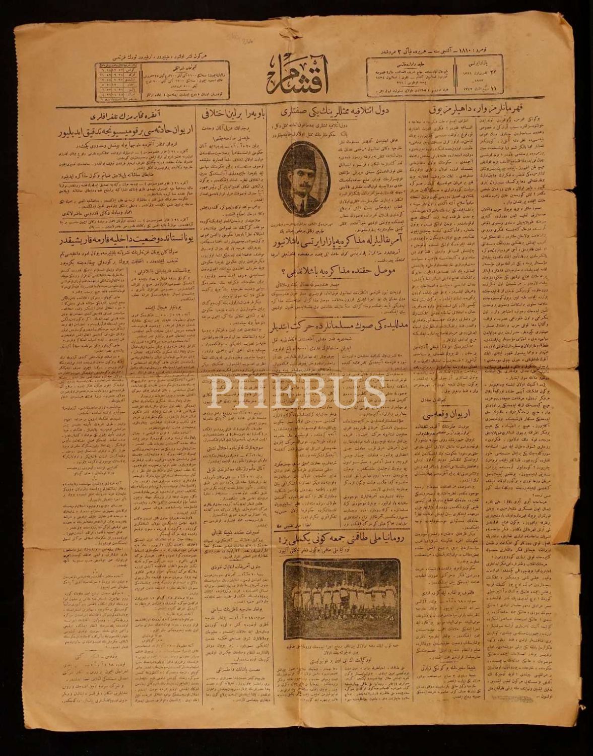 11 Rebiulevvel 1342 tarihli "Düvel -i İtilafiye mümessillerinin yeni sıfatları" manşetli Akşam gazetesi, 4 sayfa, 55x70 cm...