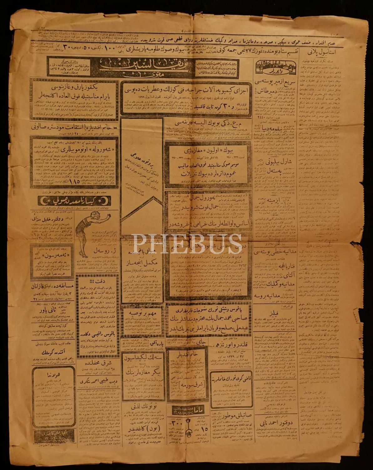 11 Zilhicce 1341 tarihli Akşam gazetesi 4 sayfa, 55x70 cm...