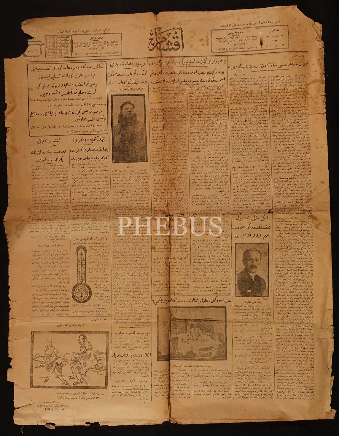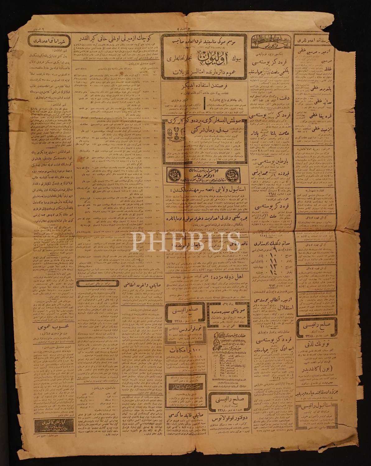 7 Muharrem 1343 tarihli "Yağmurlar bugün de İstanbul´u sildi süpürdü" manşetli Akşam gazetesi, 4 sayfa, 55x70 cm...