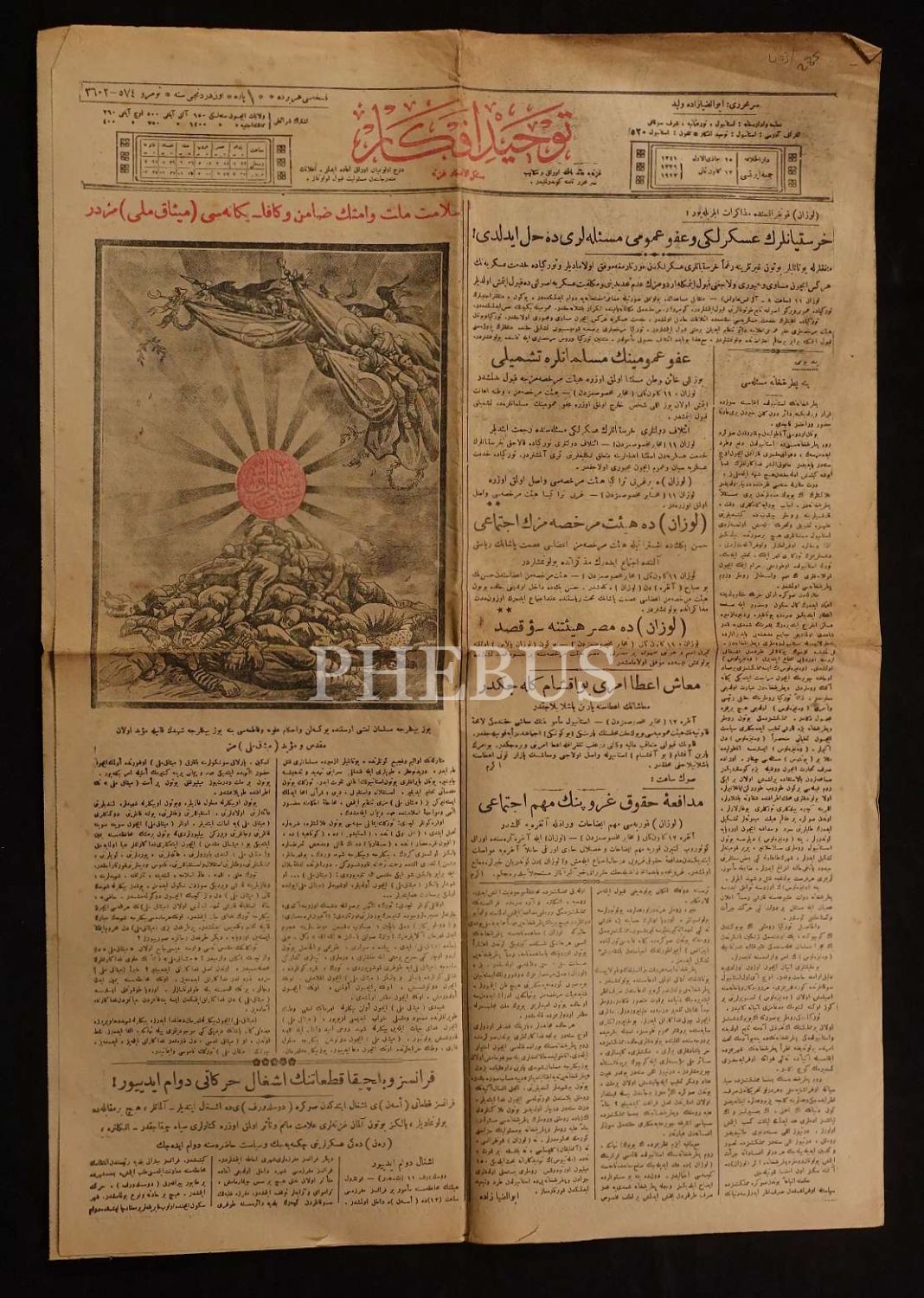 25 Cemazeyilevvel 1341 tarihli "Hristiyanların askerliği ve afv-u umumi meseleleri de halledildi" manşetli Tevhid-i Efkar gazetesi, 4 sayfa, 43x60 cm...