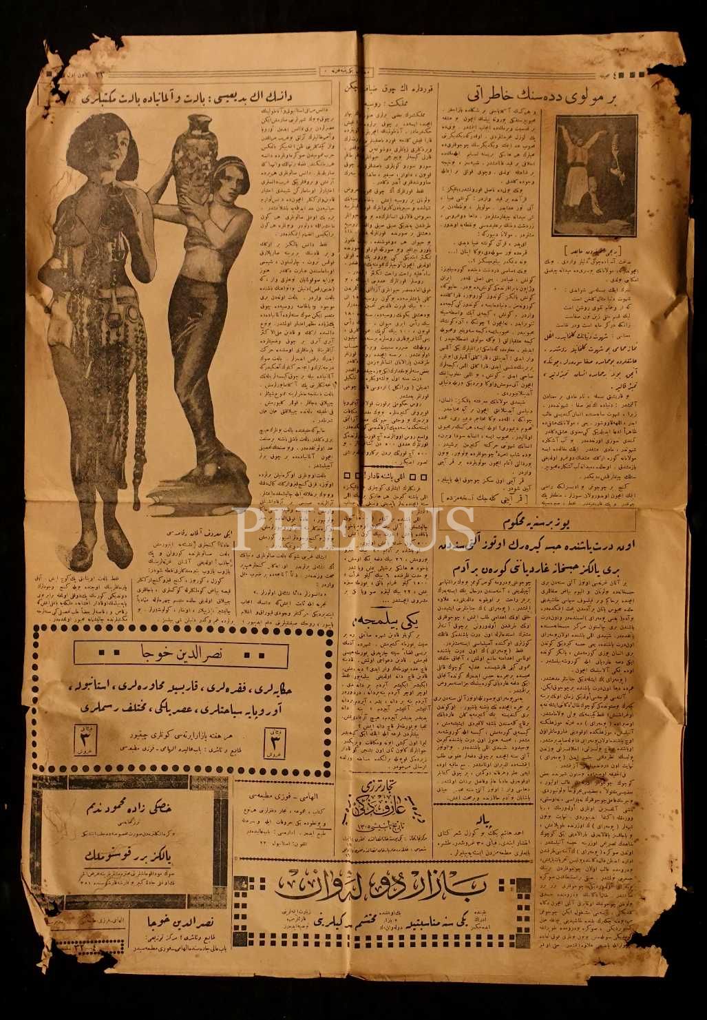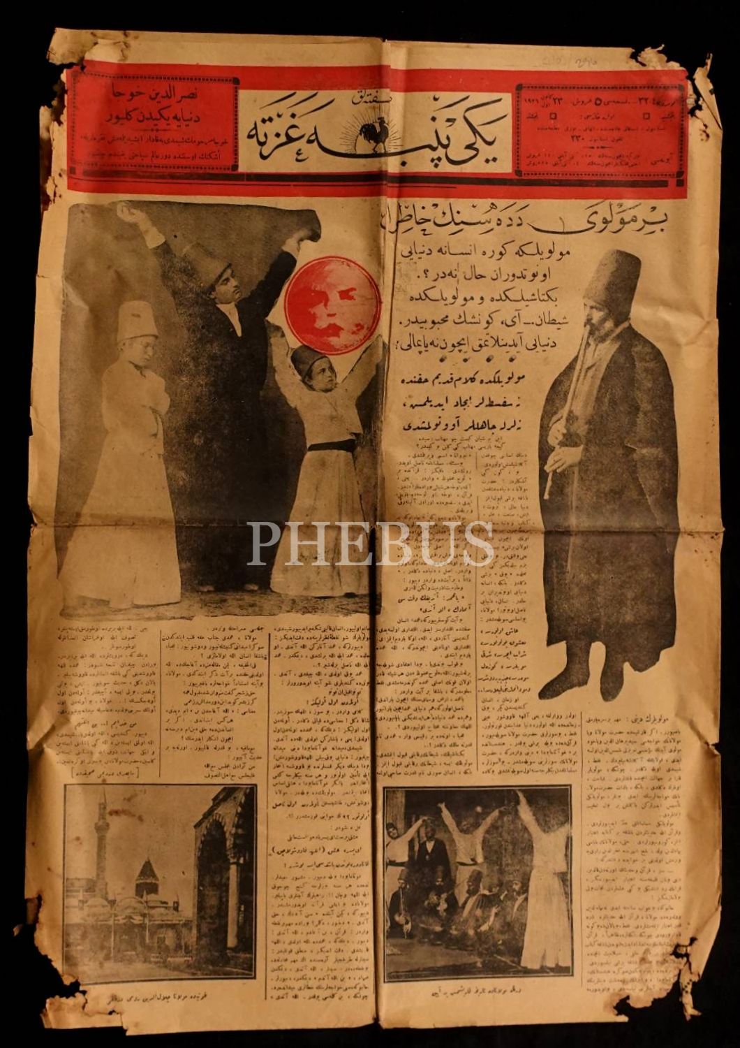 23 Kanunievvel 1926 tarihli " Bir mevlevi dedesinin hatıratı" manşetli Yeni Penbe gazetesi, 4 sayfa, 41x60 cm...