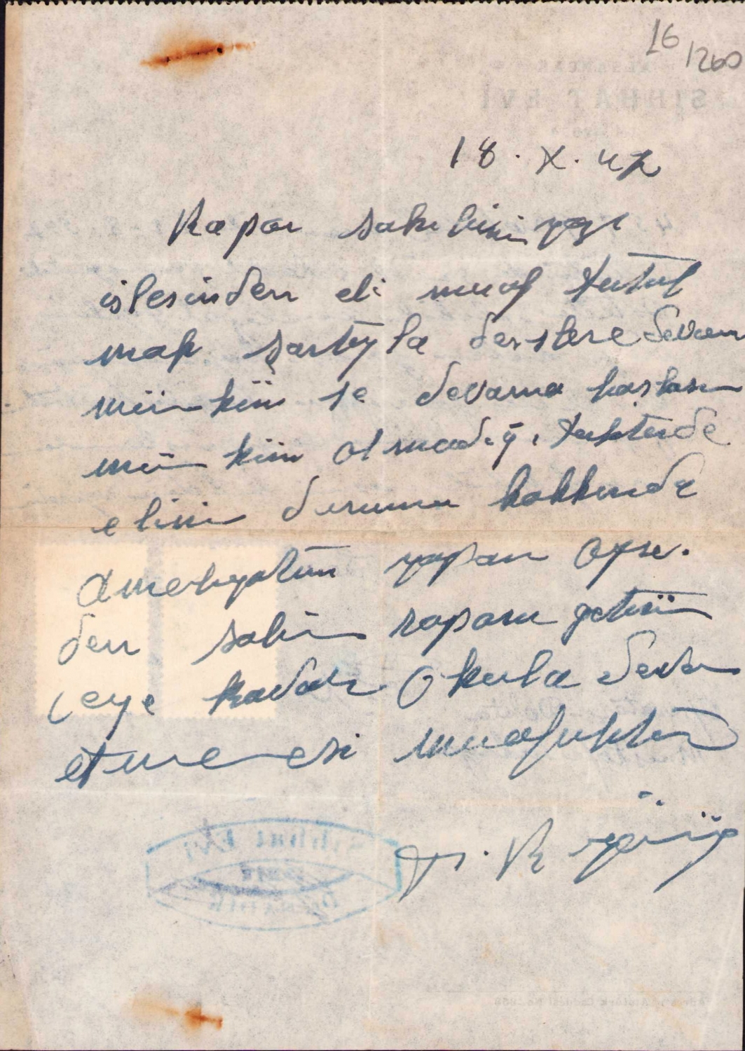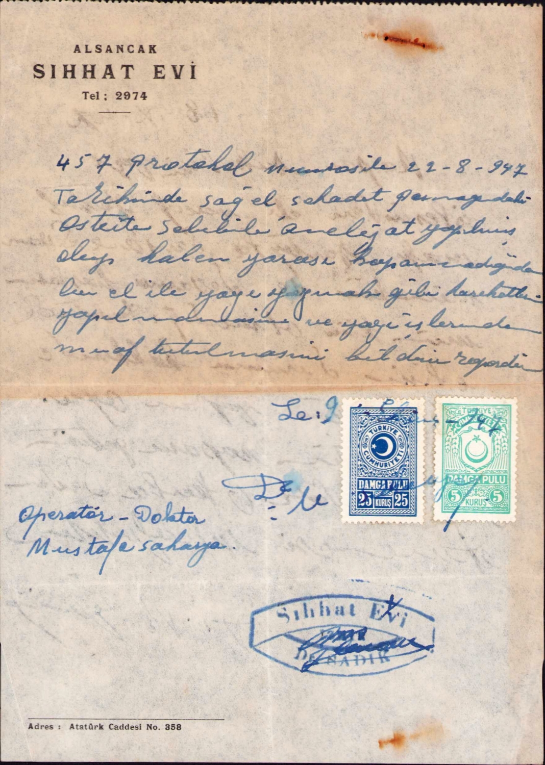 Alsancak Sıhhat Evi antetli damgalı doküman, 14x20 cm