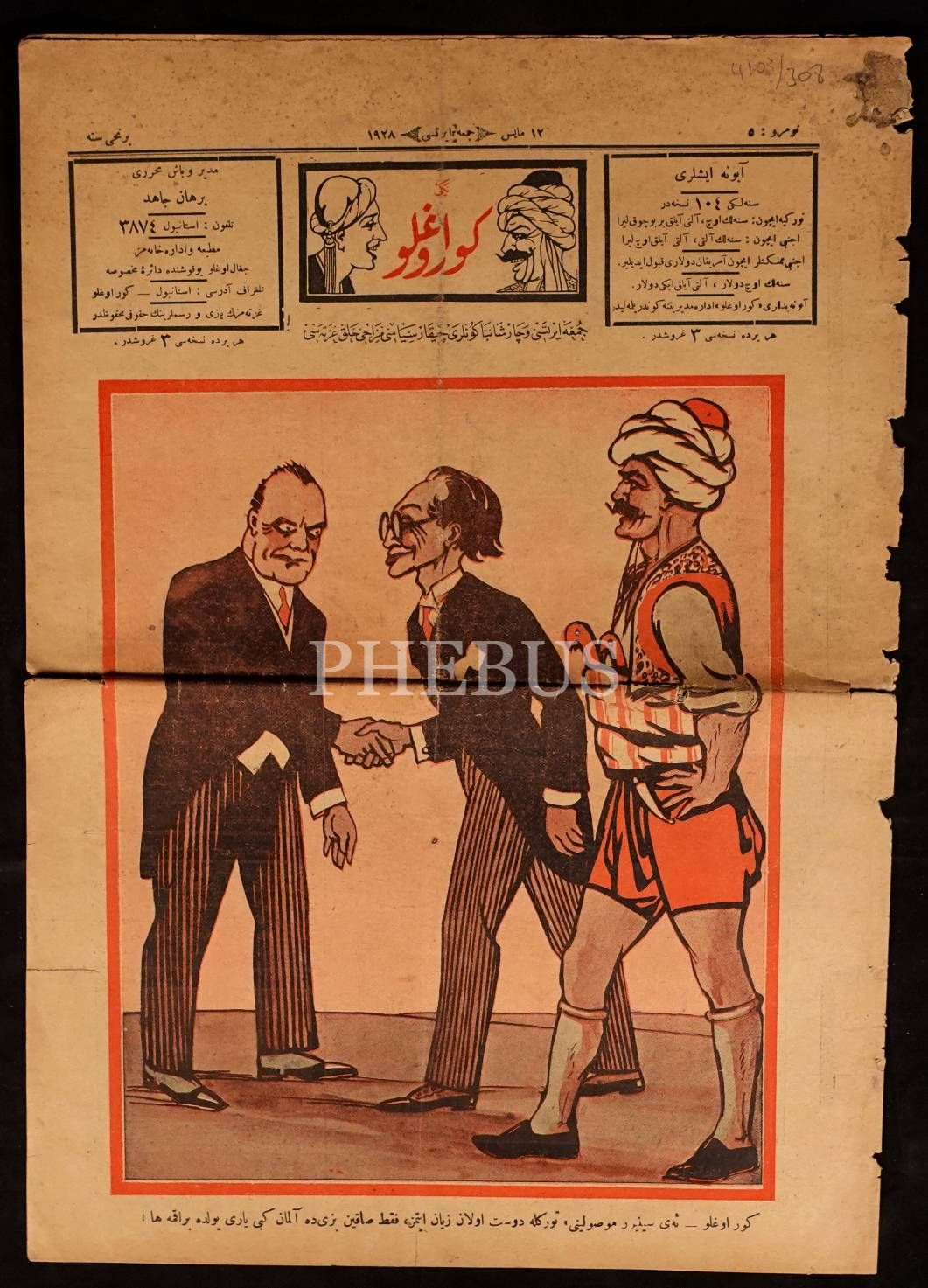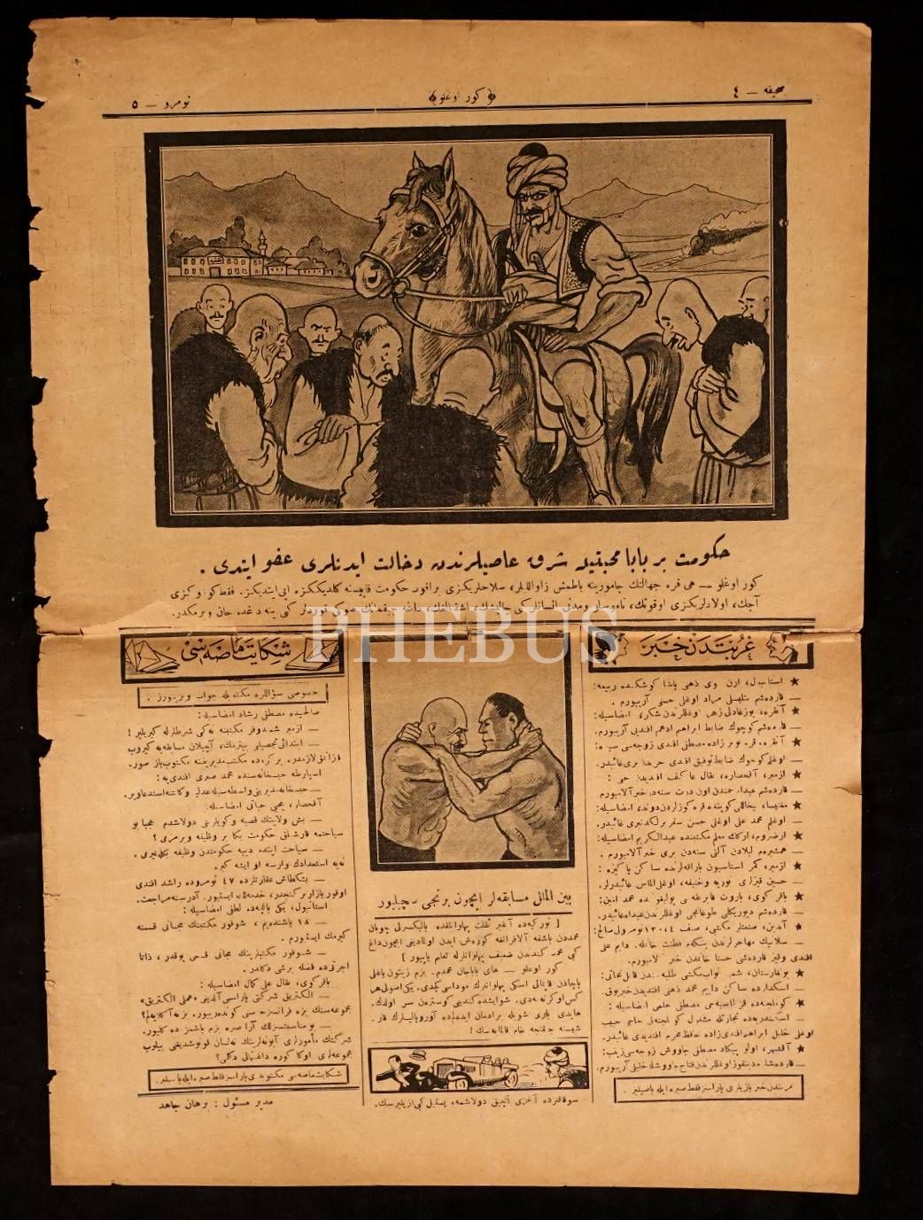 12 Mayıs 1928 tarihli Mussolini görselli Köroğlu dergisi, 4 sayfa, 27x40 cm...