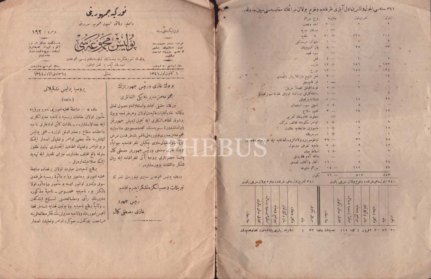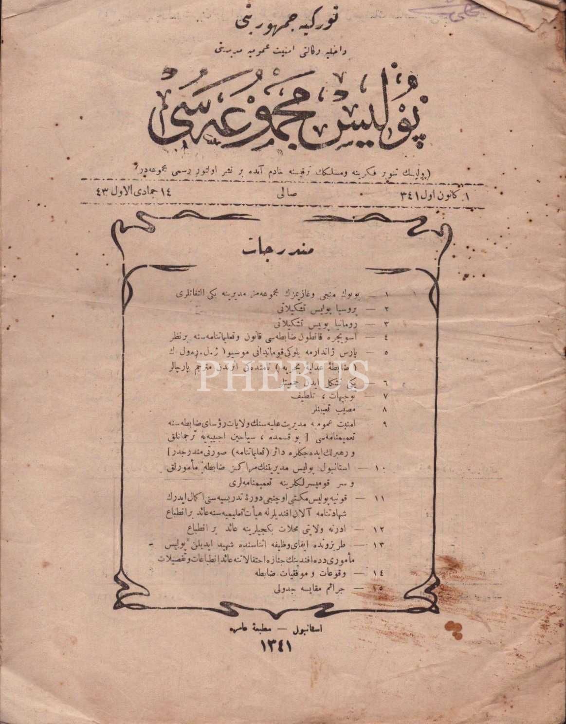 14 Cemazeyilevvel 1343 tarihli Polis Mecmuası, 24 sayfa, 20x28 cm...