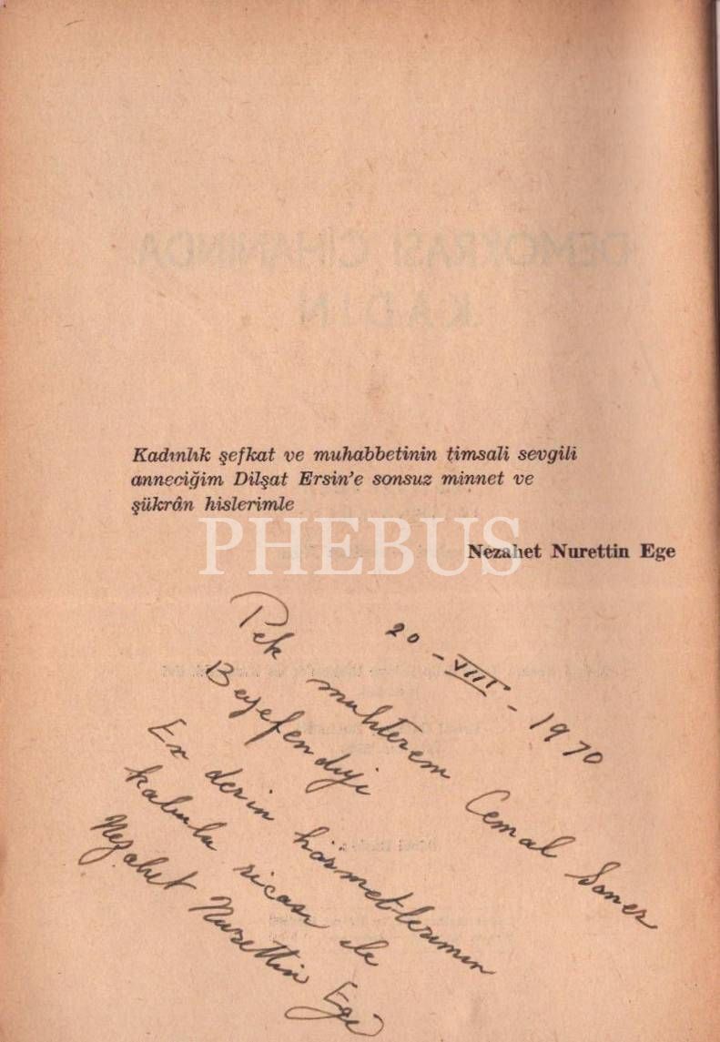 DEMOKRASİ CİHANINDA KADIN, Nezahet Nurettin Ege, 1970, Doğuş Matbaacılık ve Ticaret Limited Şirketi Matbaası, 148 sayfa, 14x20 cm, İTHAFLI VE İMZALI...
