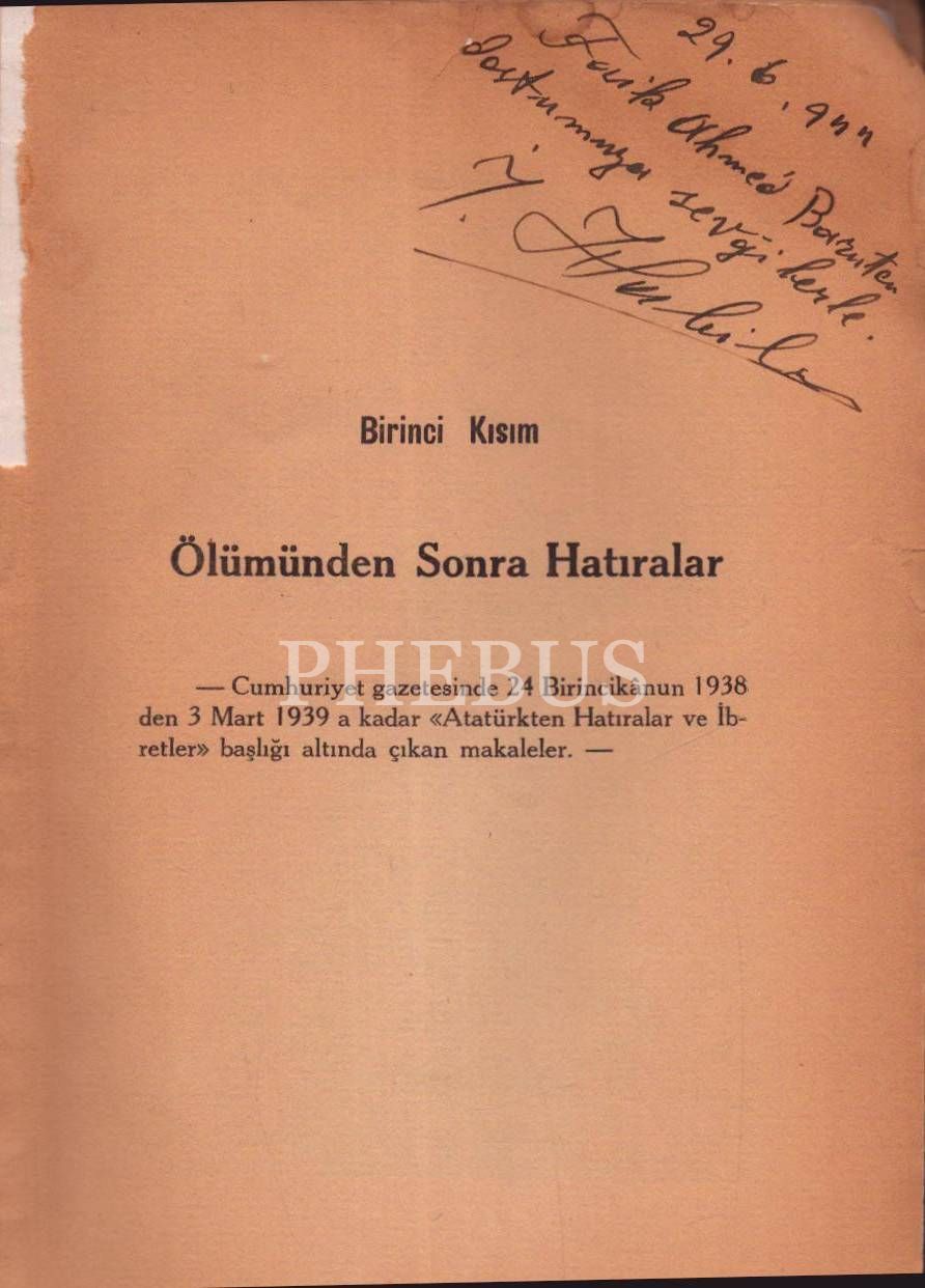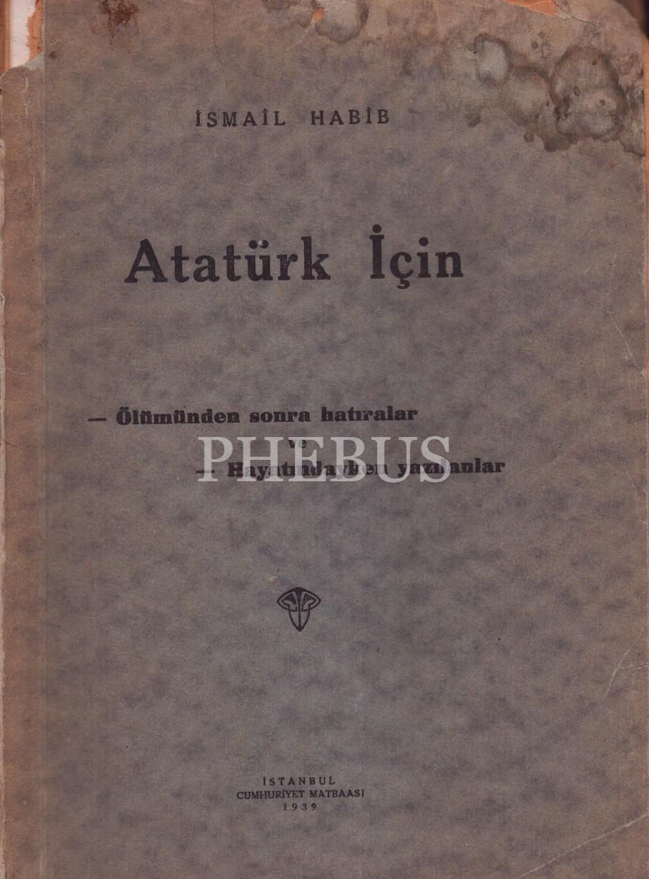 ATATÜRK İÇİN, İsmail Habib, 1939, İstanbul Cumhuriyet Matbaası, 180 sayfa, 16x23 cm, İTHAFLI VE İMZALI...
