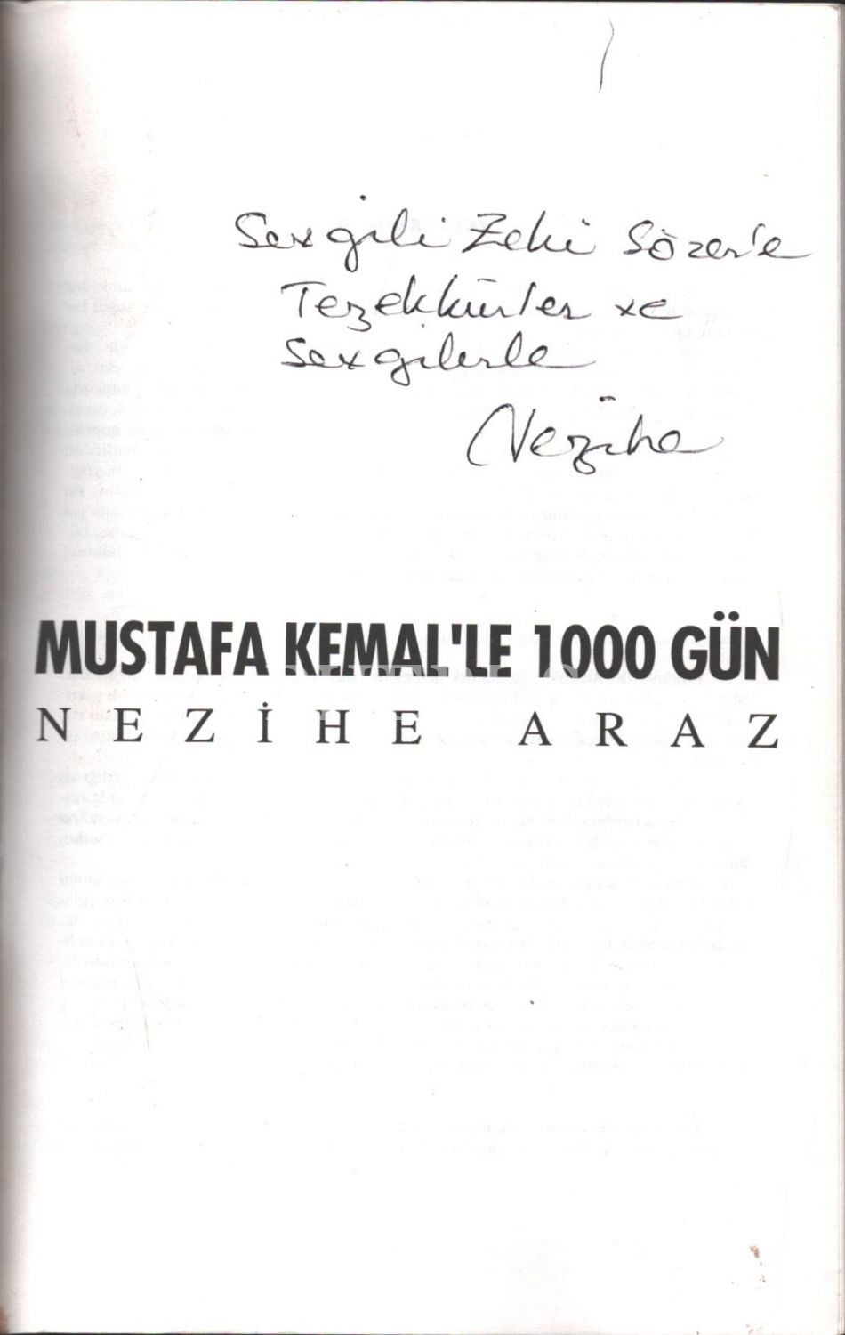 MUSTAFA KEMAL´LE 1000 GÜN, Nezihe Araz, 1993, Apa Ofset Basımevi, 233 sayfa, 15x22 cm, İTHAFLI VE İMZALI...