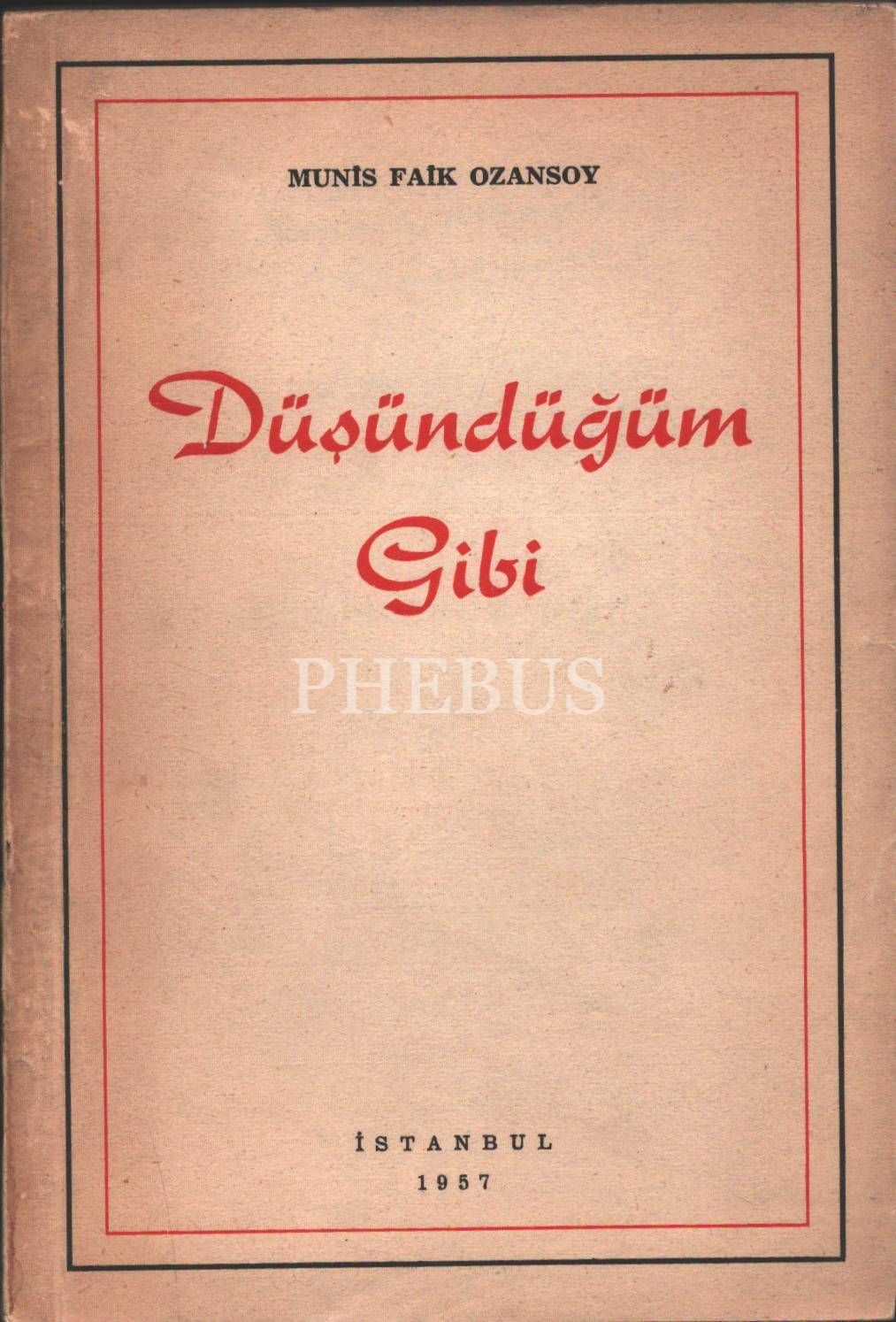 DÜŞÜNDÜĞÜM GİBİ, Munis Faik Ozansoy, 1957, Doğan Kardeş Yayınları, 134 sayfa, 13x19 cm, İTHAFLI VE İMZALI...