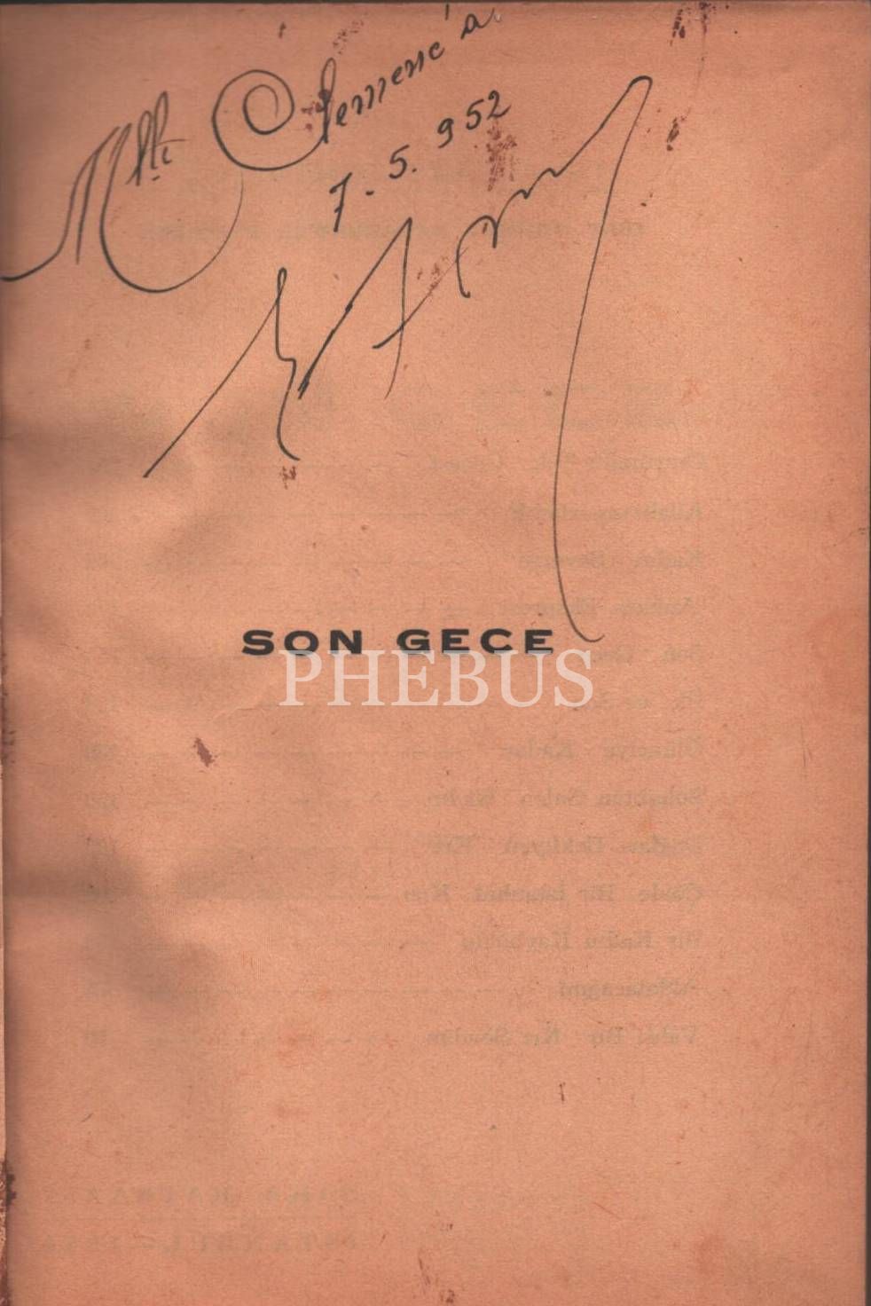 SON GECE (Roman), Esad Mahmut Karakurt, 1950, İnkılap Kitabevi, 246 sayfa, 14x20 cm, İTHAFLI VE İMZALI...