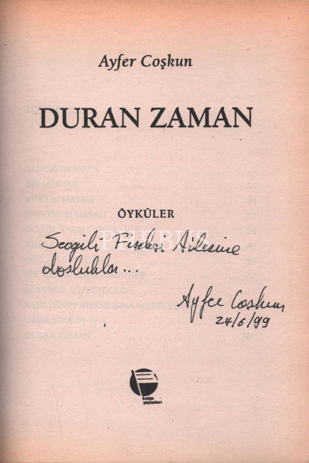 DURAN ZAMAN, Ayfer Coşkun, 1999, Belge Yayınları, 109 sayfa, 14x20 cm, İTHAFLI VE İMZALI...
