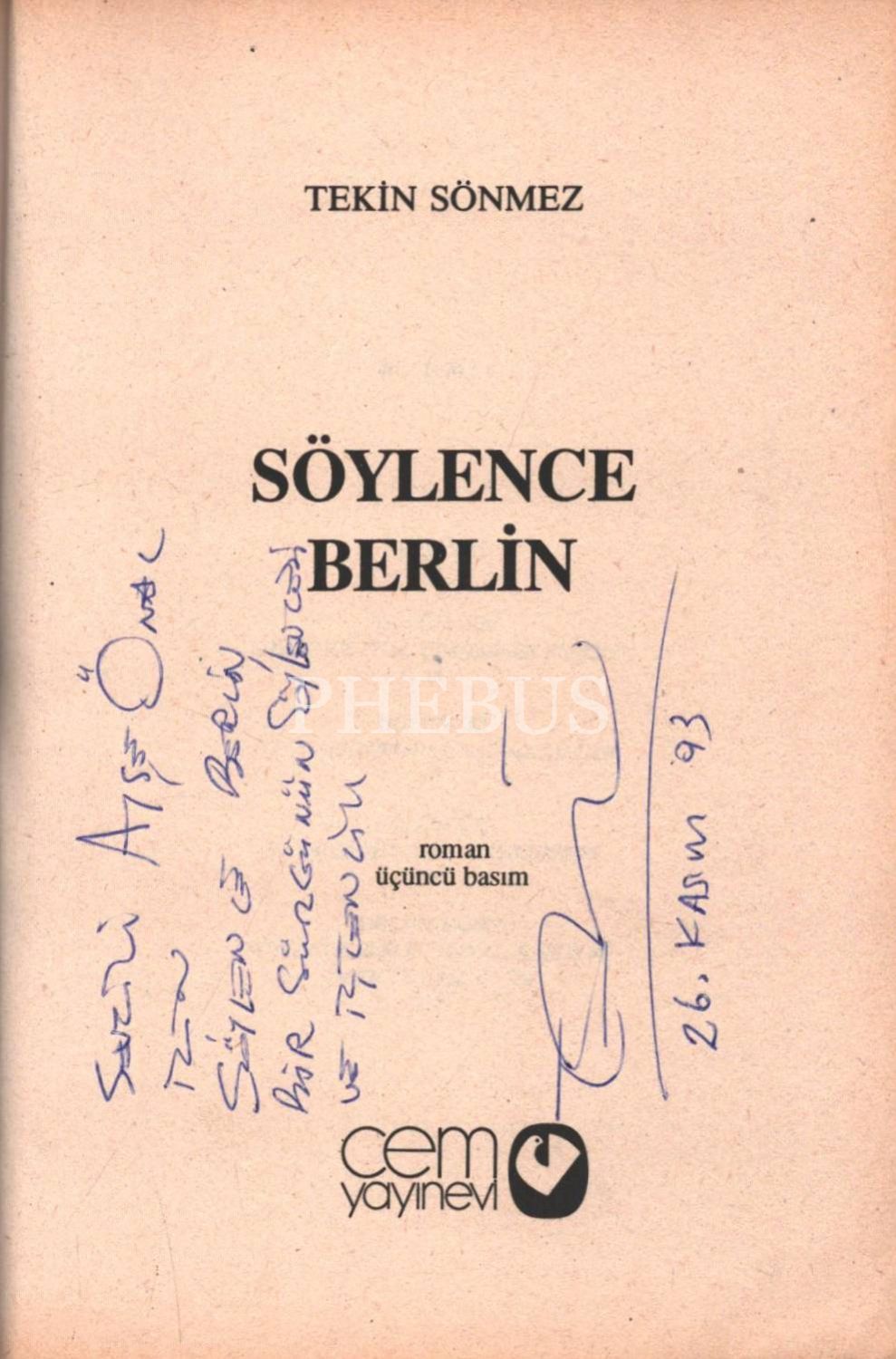 SÖYLENCE BERLİN, Tekin Sönmez, 1993, Cem Yayınları, 254 sayfa, 14x20 cm, İTHAFLI VE İMZALI...
