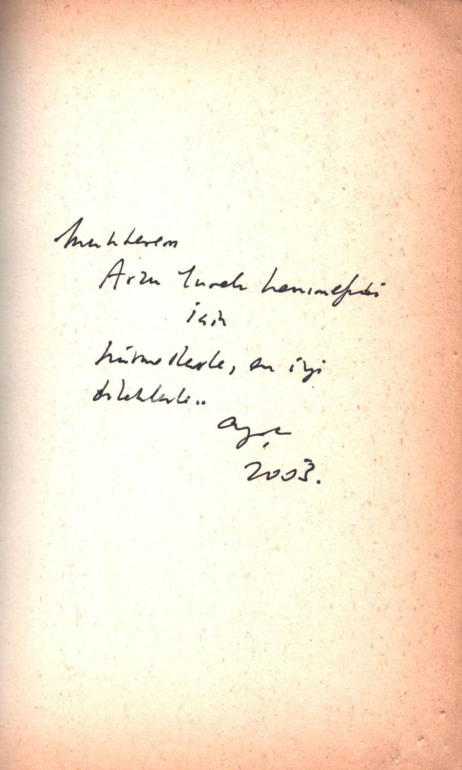 İthaf, " Muhterem Arzu Yürek hanımefendi için hürmetlerle, en iyi dileklerle... 2003" şeklindedir