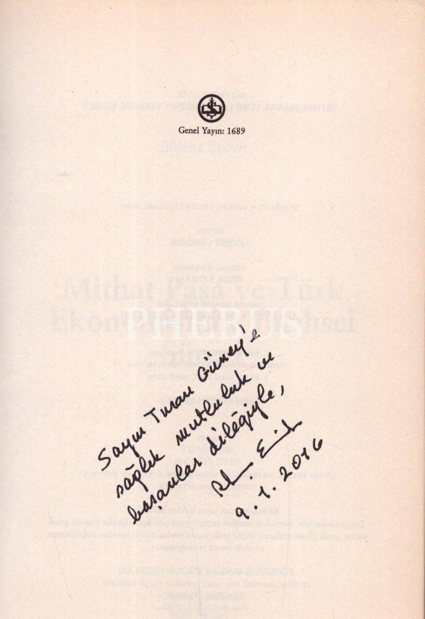 MİTHAT PAŞA VE TÜRK EKONOMİSİNİN TARİHSEL SÜRECİ, Bülent Ecevit, 2009, Türkiye İş Bankası Kültür Yayınları, 138 sayfa, 16x23 cm, Rahşan Ecevit'ten İTHAFLI VE İMZALI...