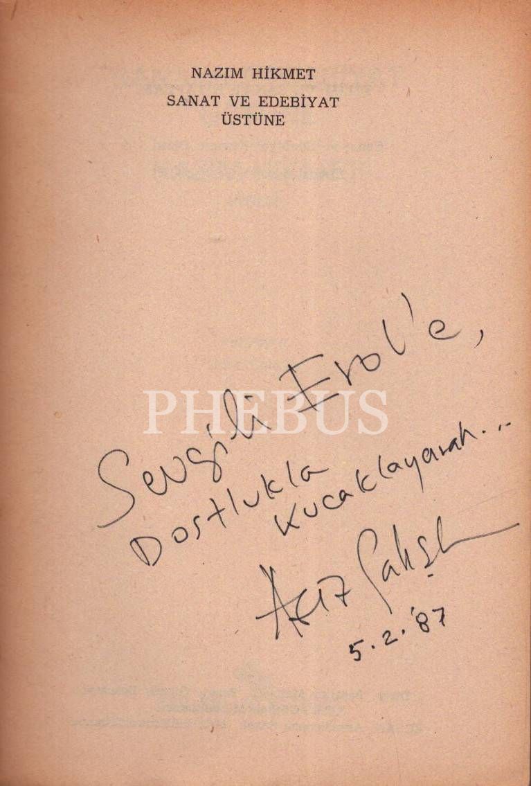 NAZIM HİKMET SANAT VE EDEBİYAT ÜSTÜNE, Aziz Çalışlar, 1987, Bilim ve Sanat Yayınları, 362 sayfa, 14x20 cm, İTHAFLI VE İMZALI...