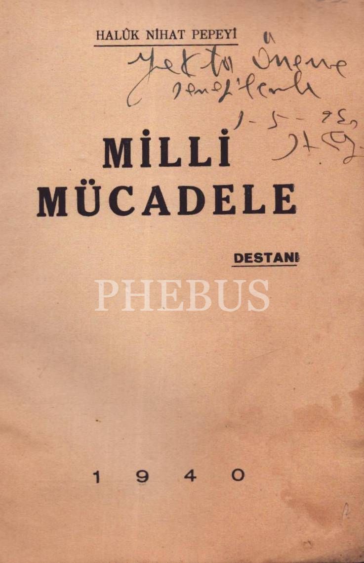 MİLLİ MÜCADELE DESTANI, Haluk Nihat Pepeyi, 1940, Sertel Matbaası, 63 sayfa, 14x20 cm, İTHAFLI VE İMZALI...
