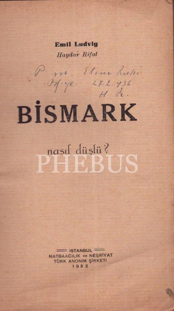 BİSMARK NASIL DÜŞTÜ, Emil Ludvig & Haydar Rifat, İstanbul Matbacılık ve Neşriyat T.A.O, 134 sayfa, 12x19 cm, İTHAFLI VE İMZALI...