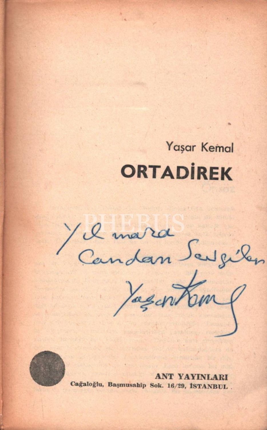 ORTA DİREK, Yaşar Kemal, Temmuz 1968, Ant Yayınları, 459 sayfa, 12x20 cm, İTHAFLI VE İMZALI...
