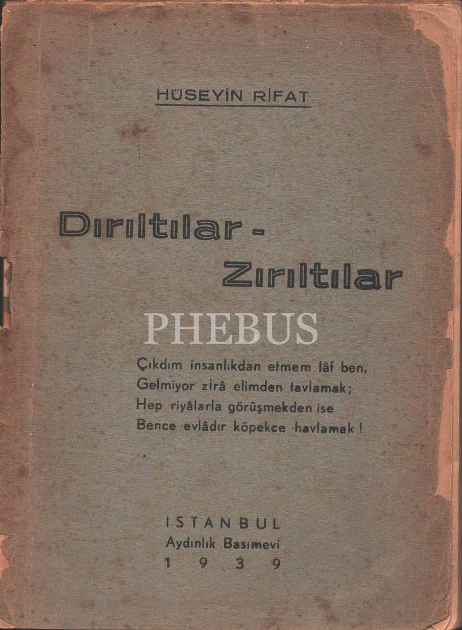 DIRILTILAR-ZIRILTILAR, Hüseyin Rıfat, 1939, Aydınlık Basımevi, 96 sayfa, 12x16cm, İTHAFLI VE İMZALI...