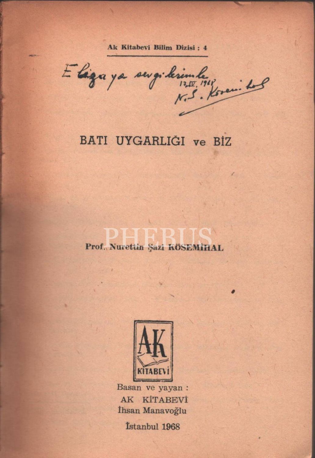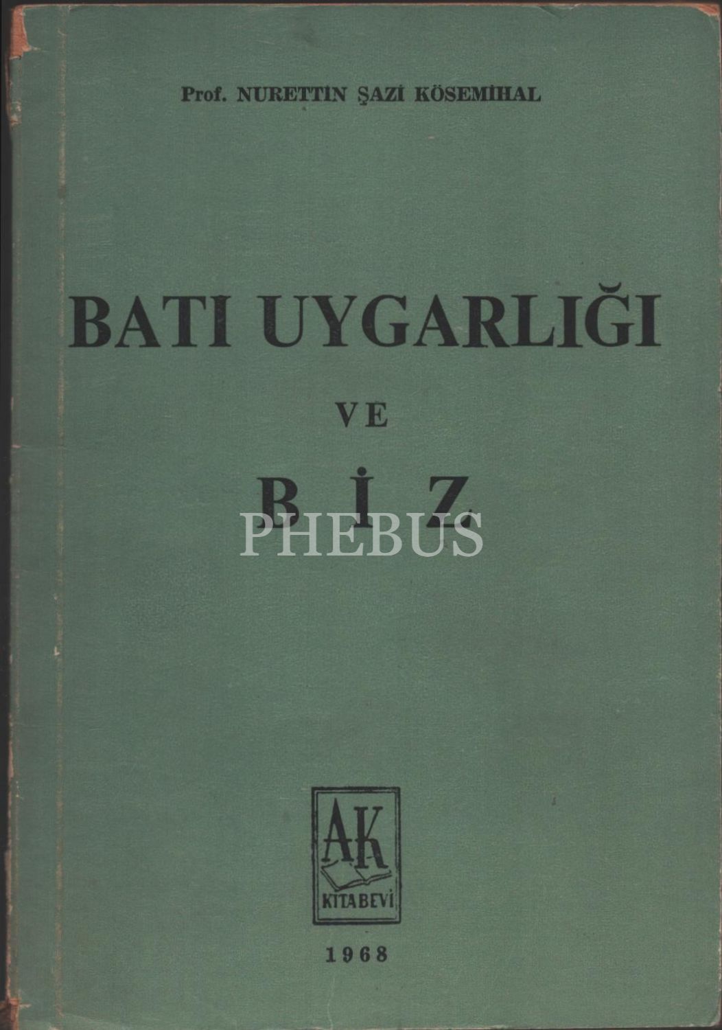 BATI UYGARLIĞI VE BİZ, Nurettin Şazi Kösemihal, 1968, Ak Kitabevi, 159 sayfa, 14x20 cm, İTHAFLI VE İMZALI...