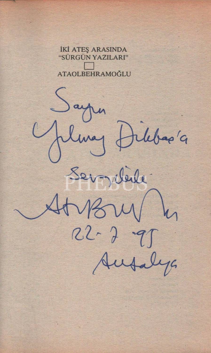 İKİ ATEŞ ARASINDA "SÜRGÜN YAZILARI" , Ataol Behramoğlu, 1989, Boyut Yayınları, 86 sayfa, 14x20 cm, İTHAFLI VE İMZALI...