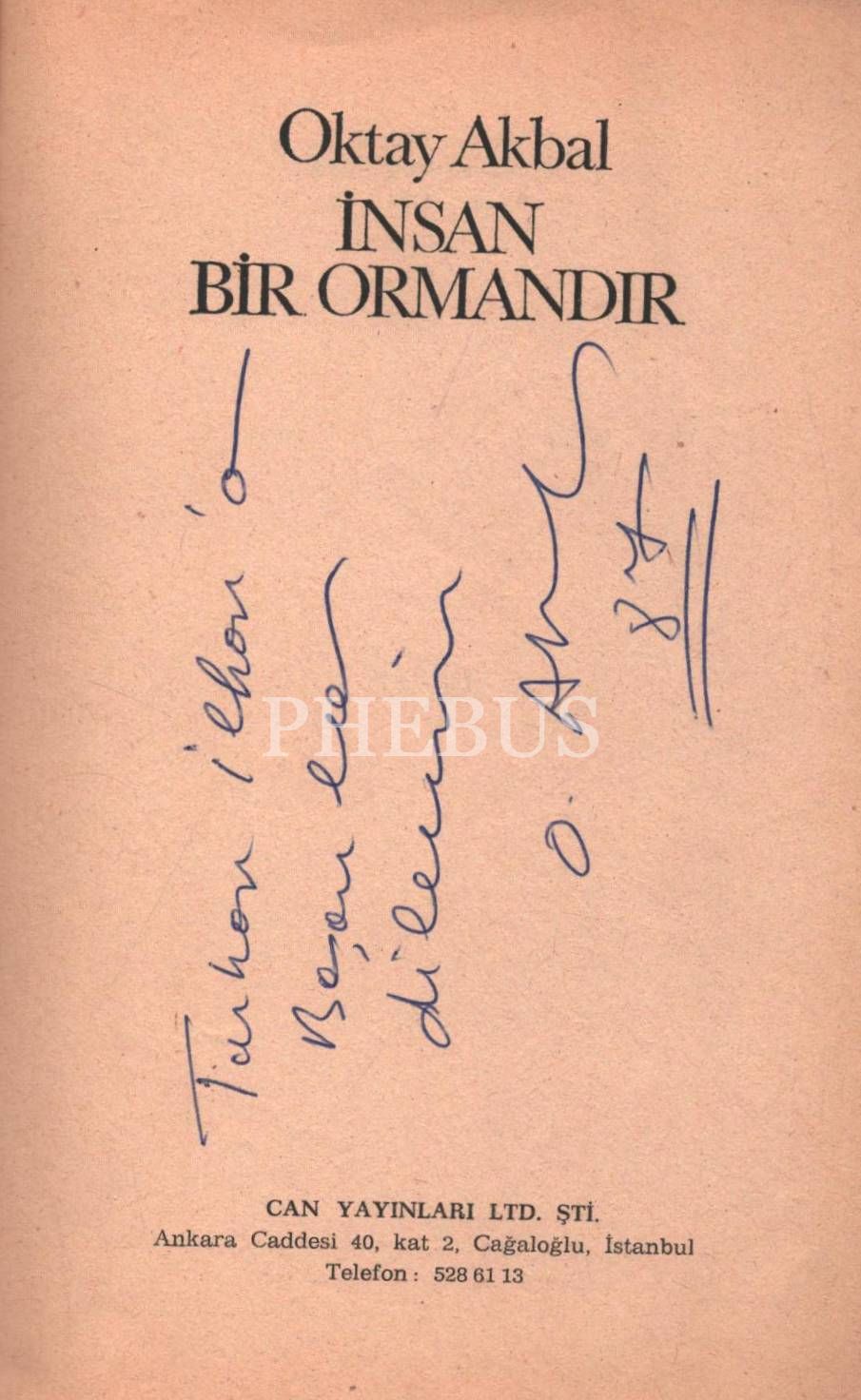 İNSAN BİR ORMANDIR, Oktay Akbal, 1987, Can Yayınları, 117 sayfa, 14x20 cm, İTHAFLI VE İMZALI...