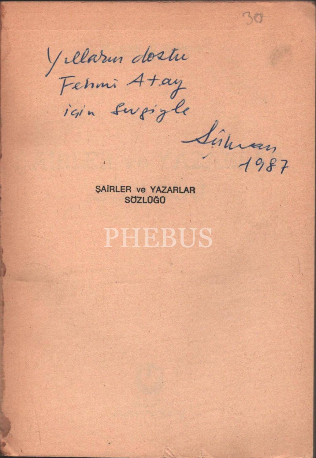 İthaf, "Yılların dostu Fehmi Atay için sevgiyle 1987" şeklindedir.