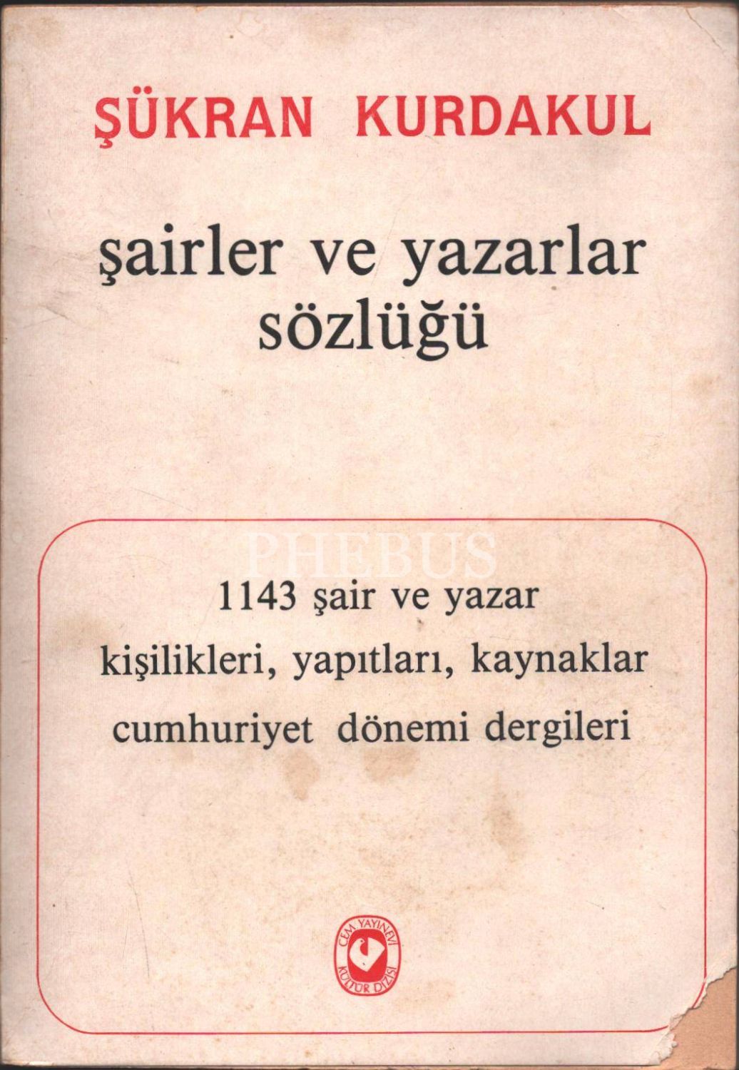 ŞAİRLER VE YAZARLAR SÖZLÜĞÜ, Şükran Kurdakul, 1985, Cem Yayınevi, 769 sayfa, 14x20 cm, İTHAFLI VE İMZALI...