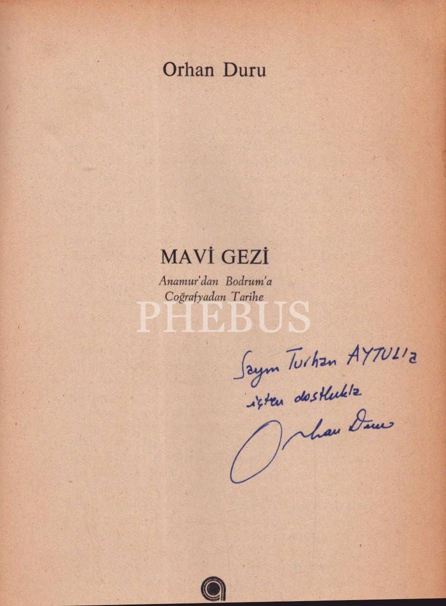 ANAMUR´DAN BODRUM´A COĞRAFYADAN TARİHE MAVİ GEZİ, Orhan Duru, 1986, Ada Yayınları, 140 sayfa, 17x24 cm, İTHAFLI VE İMZALI...