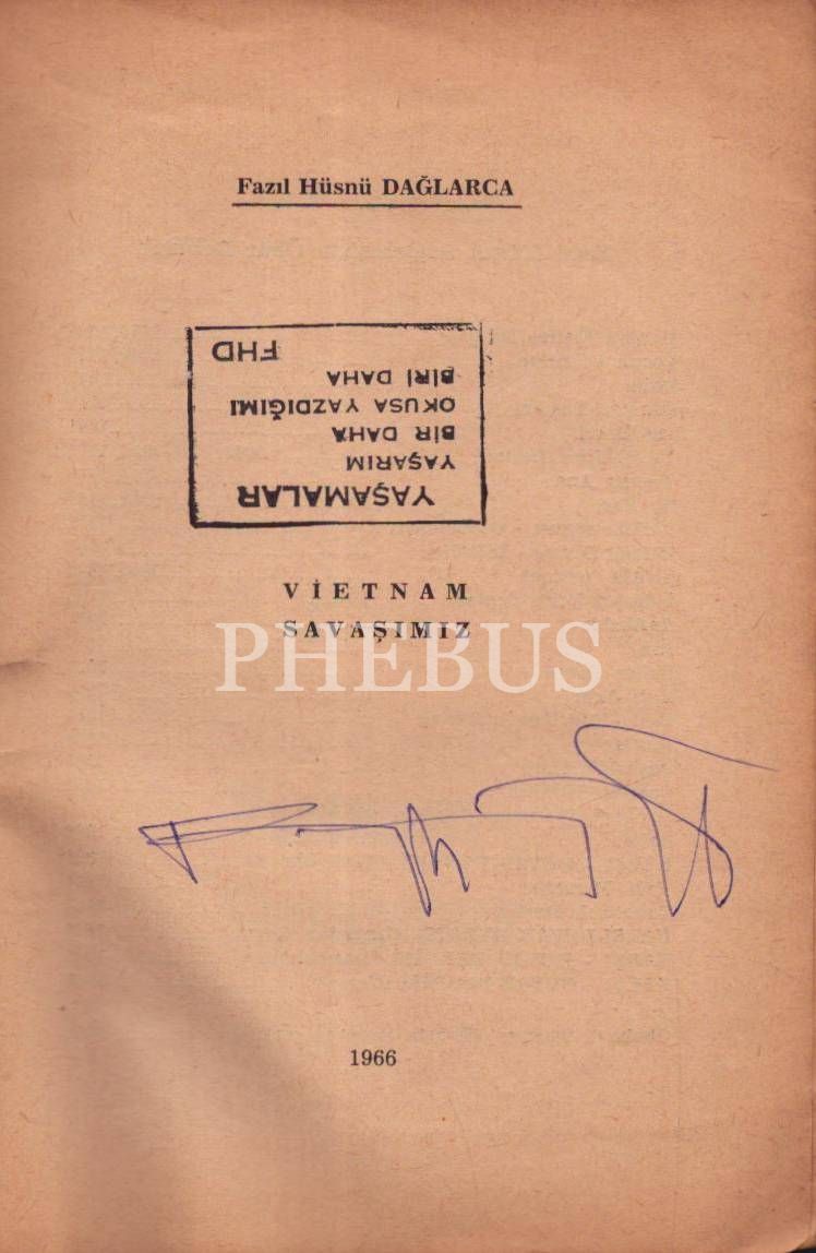 VİETNAM SAVAŞIMIZ, Fazıl Hüsnü Dağlarca, 1966, Yenilik Basımevi, 46 sayfa, 14x20 cm, İMZALI...