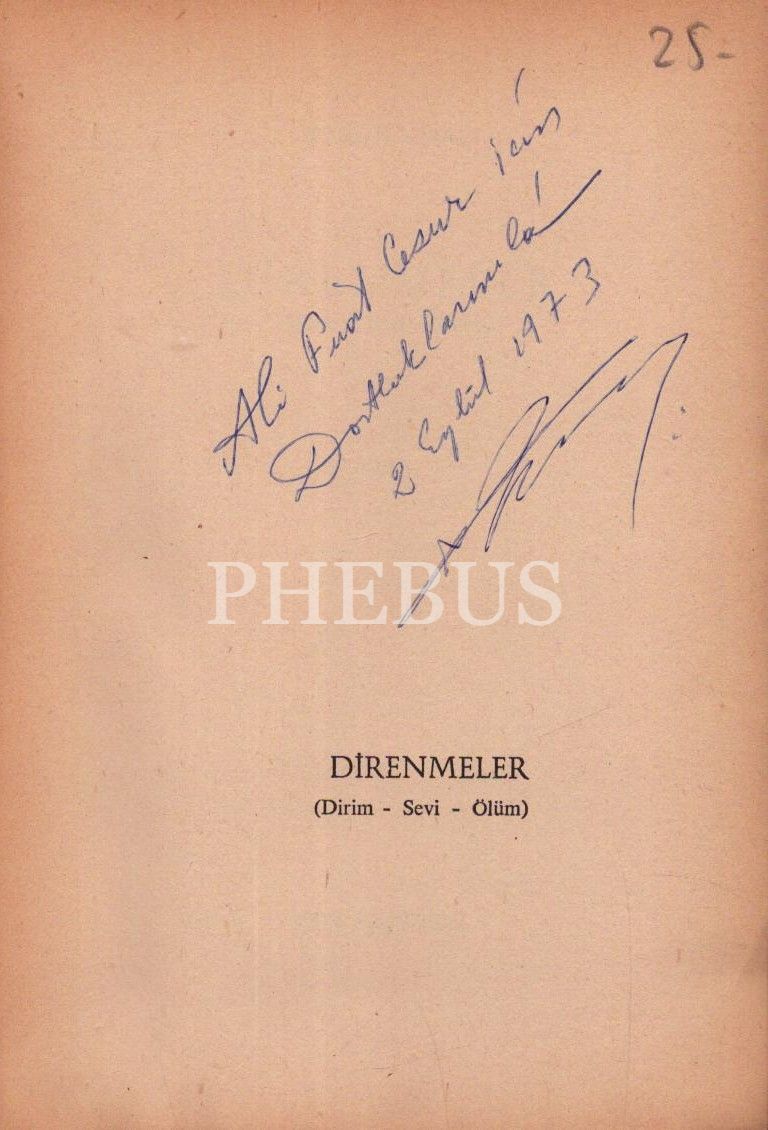İthaf, "Ali Fuat Cesur için Dostluklarımla 2 Eylül 1973" şeklindedir.