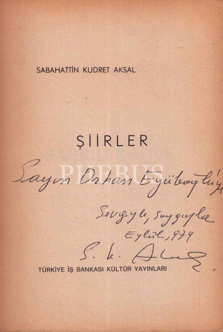 ŞİİRLER, Sabahattin Kudret Aksal, 1979, Türkiye İş Bankası Kültür Yayınları, 395 sayfa, 14x20 cm, İTHAFLI VE İMZALI...