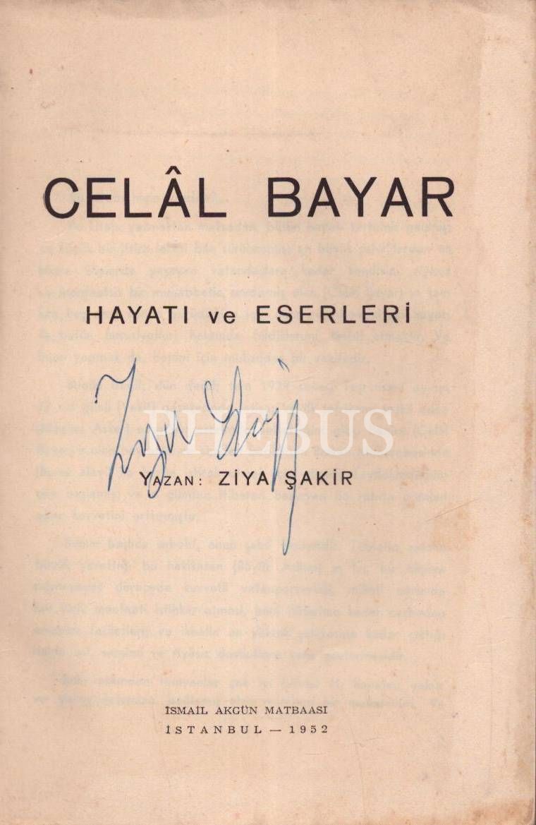 CELAL BAYAR HAYATI VE ESERLERİ, Ziya Şakir, 1952, İsmail Akgün Matbaası, 191 sayfa, 14x20 cm, İMZALI...
