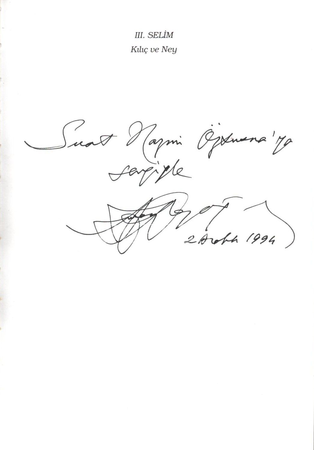III. SELİM KILIÇ VE NEY, A. Turan Oflazoğlu, 1994, T.C. Kültür Bakanlığı Yayınları, 182 sayfa, 14x20 cm, İTHAFLI VE İMZALI...