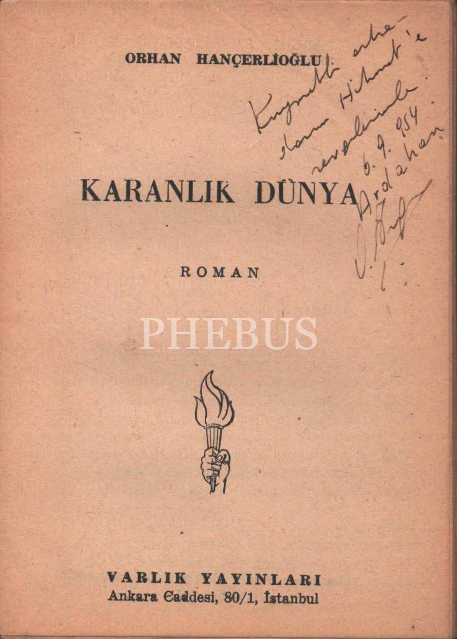KARANLIK DÜNYA, Orhan Hançerlioğlu, Şubat 1951, Varlık Yayınları, 120 sayfa, 12x17 cm, İTHAFLI VE İMZALI...