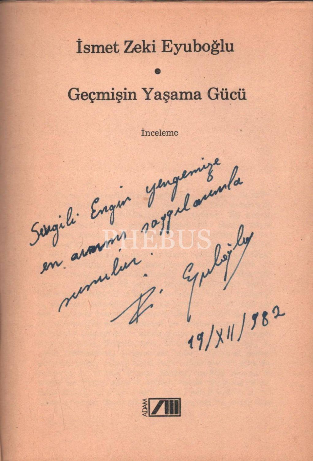 GEÇMİŞİN YAŞAMA GÜCÜ, İsmet Zeki Eyuboğlu, Eylül 1982, Adam Yayıncılık, 272 sayfa, 14x20 cm, İTHAFLI VE İMZALI...