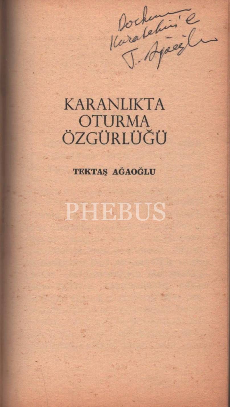 KARANLIKTA OTURMA ÖZGÜRLÜĞÜ, Tektaş Ağaoğlu, Şubat 1978, Ağaoğlu Yayınevi, 104 sayfa, 11x19 cm, İTHAFLI VE İMZALI...