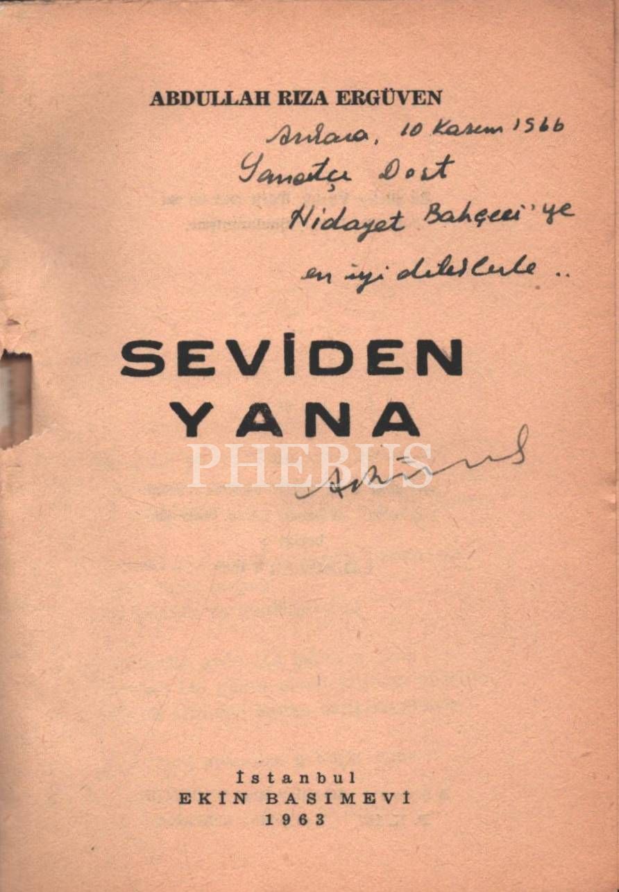 SEVİDEN YANA, Abdullah Rıza Ergüven, 1963, Ekin Basımevi, 79 sayfa, 12x17 cm, İTHAFLI VE İMZALI...