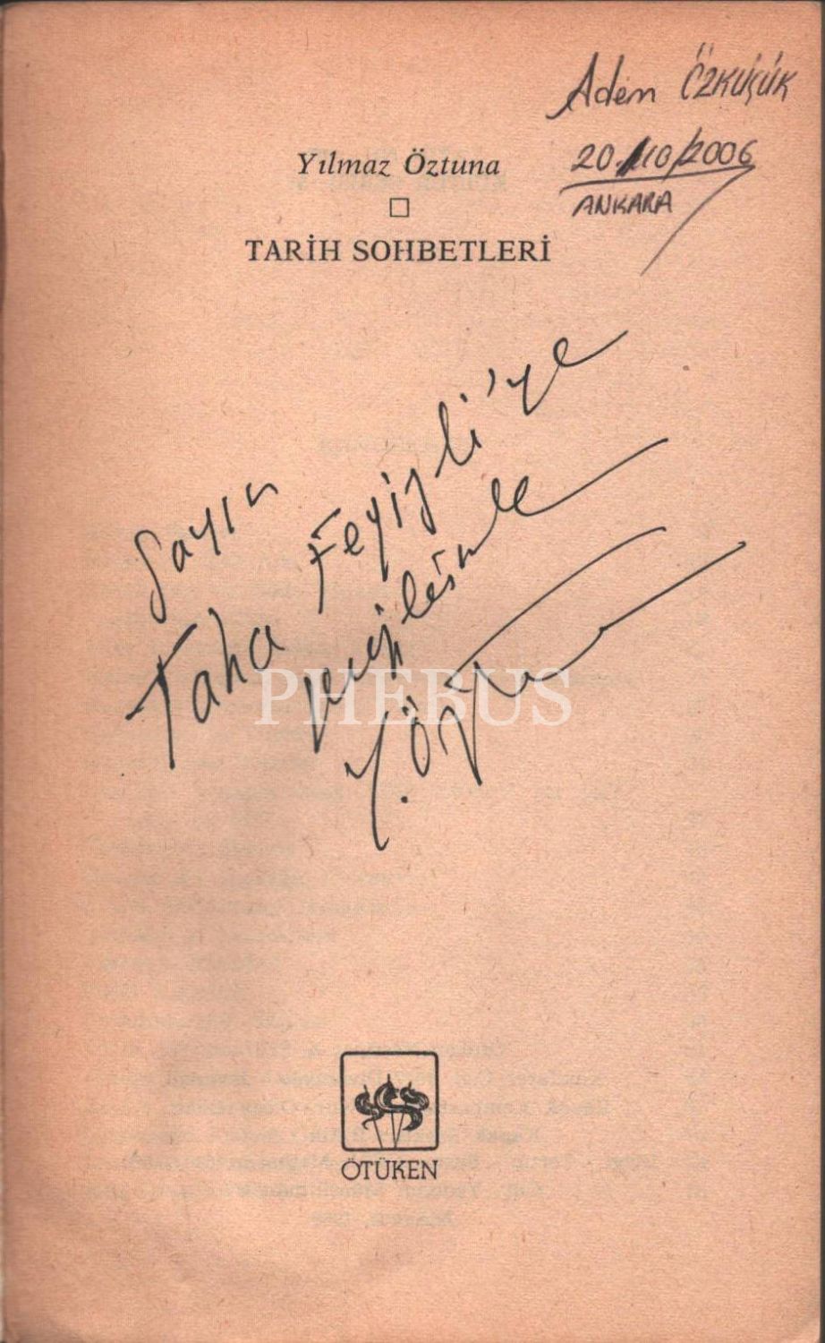 İthaf, "Sayın Taha Feyizli´ye sevgilerle" şeklindedir.