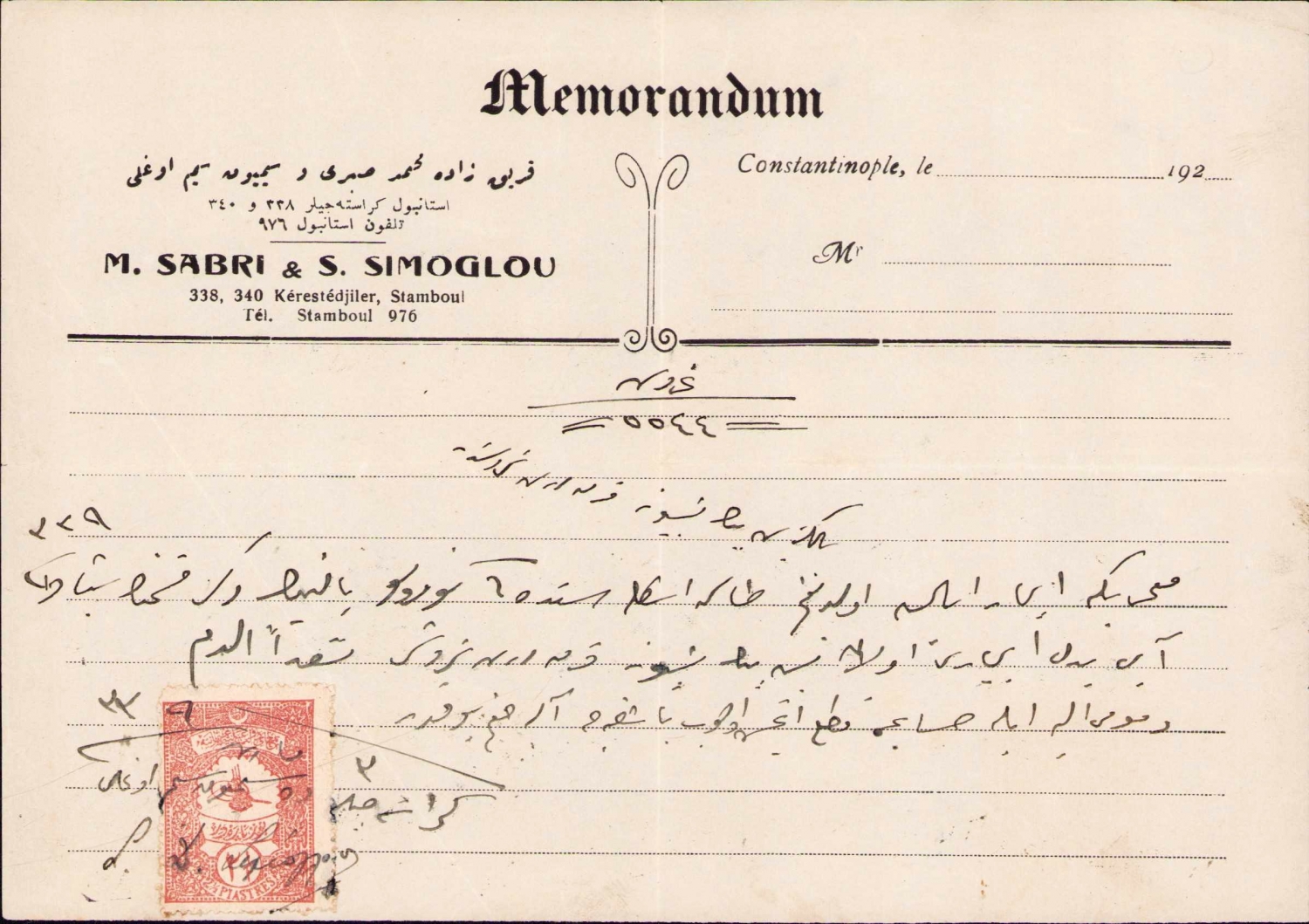 Osmanlıca - Fransızca M. Sabri & S. Simoğlu İstanbul Keresteciler antetli 1329 tarihli doküman, 20x14 cm