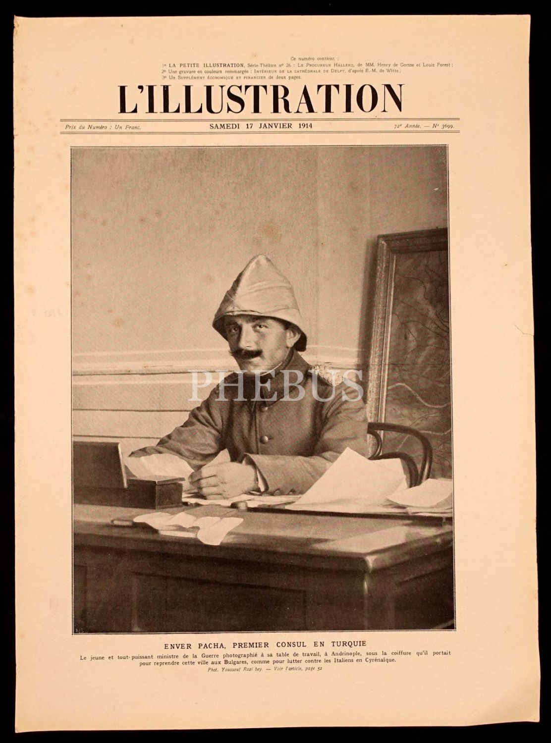 Başkuman Vekili Enver Paşa görselli, 17 Ocak 1914 tarihli L´Illustration gazetesi kapağı (yalnızca kapak), 30x41 cm...
