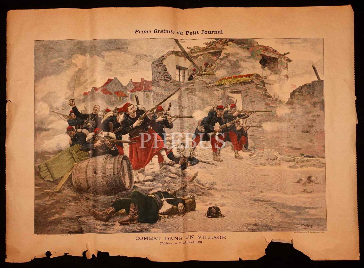 Le Petit Journal gazetesinin eki olarak verilen "Köy Meydanında Çarpışan Türk Askerleri" konulu, arkası boş büyük boy afiş, "Combat Dans un Village", 44x60 cm...
