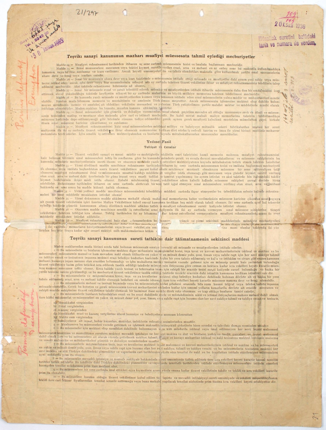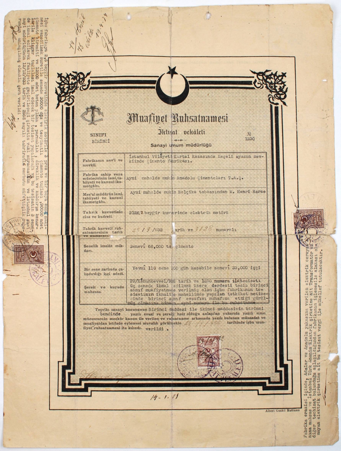 Muafiyet Ruhsatnamesi İktisat Vekaleti, 1932 tarihli,haliyle, 33x43 cm
