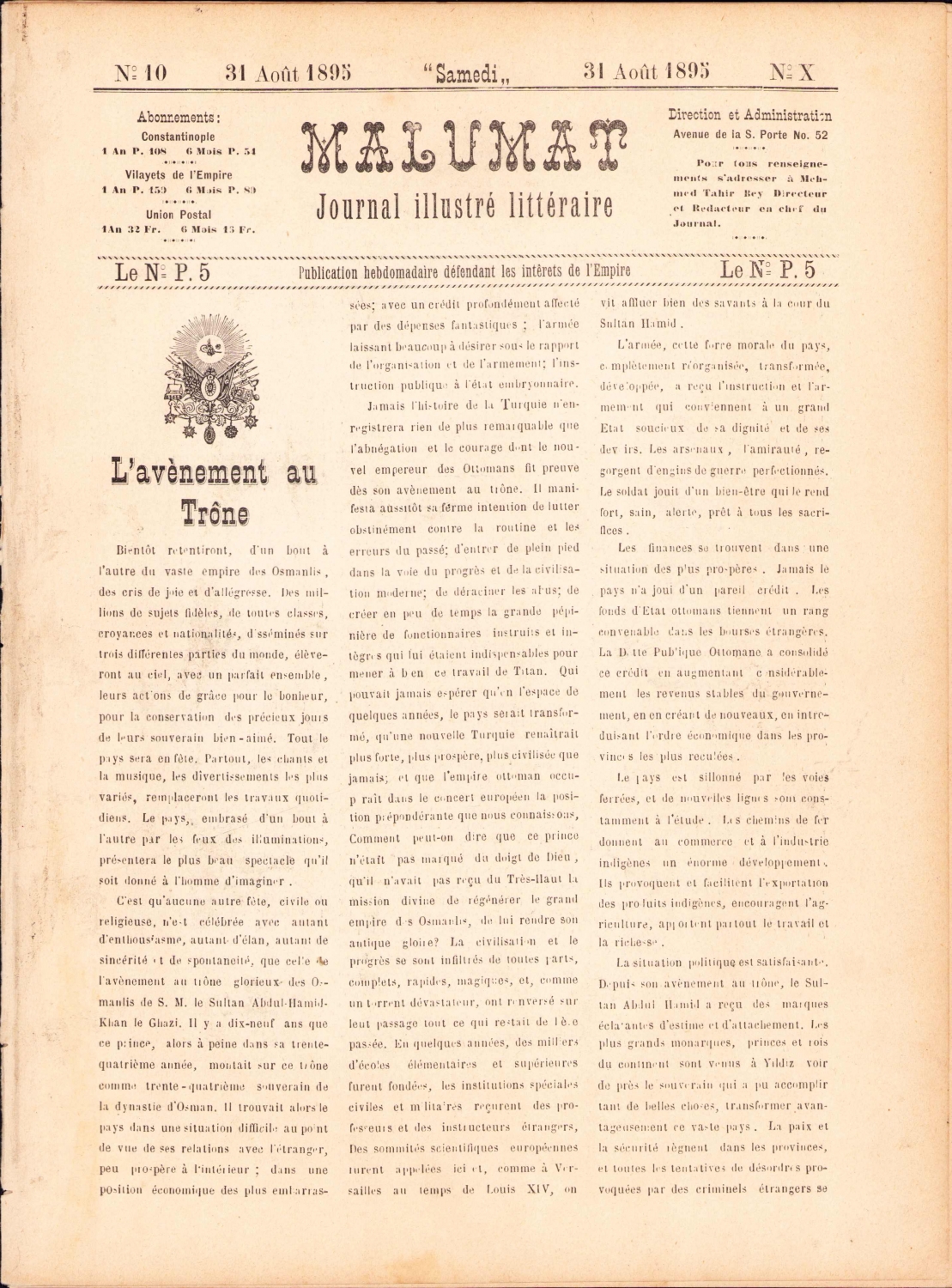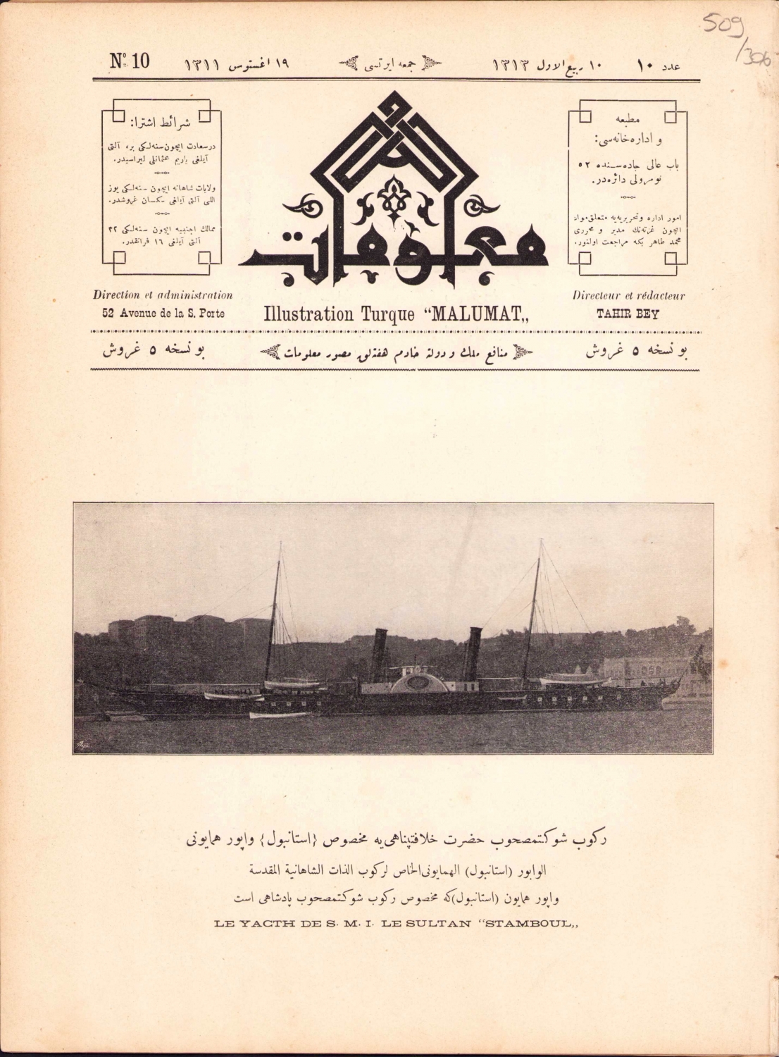 Osmanlıca 1311 tarihli "Malumat" mecmuası, kapak İstanbul Vapuru Hümayun, resimli, 24 sayfa, 23x33 cm