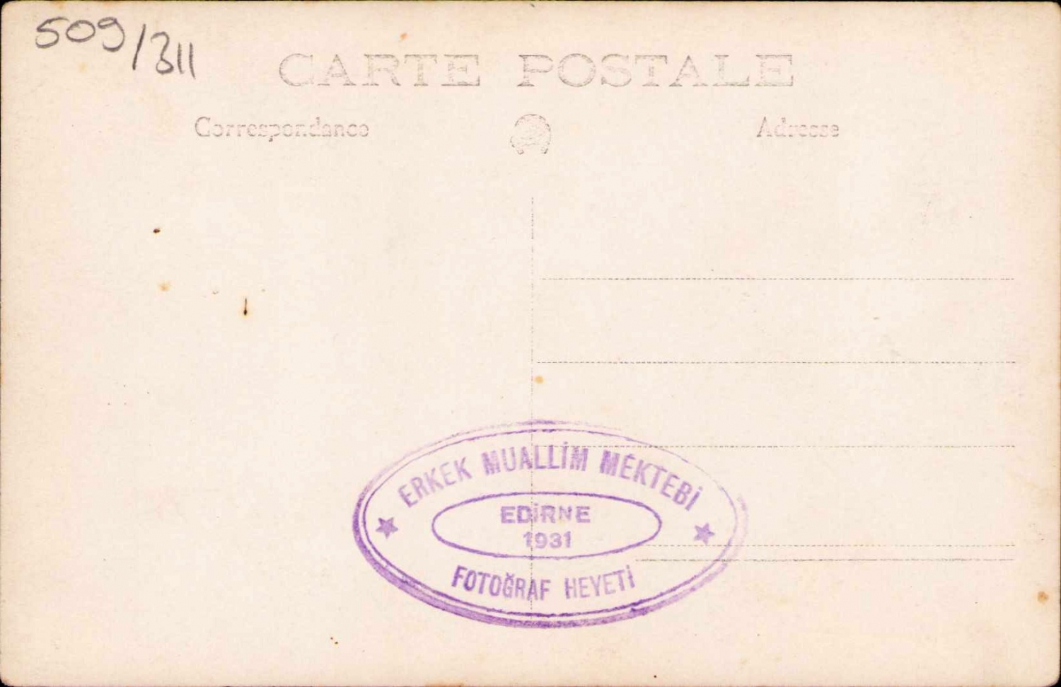 Erkek Muallim Mektebi Edirne damgalı