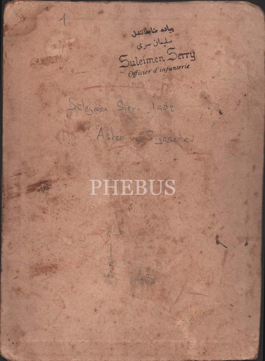 Osmanlıca ve Fransızca "Asker ve Siyasetçi Süleyman Sırrı" (İçöz) kaşeli, kendisine ait kabin fotoğraf, 12x17 cm...
