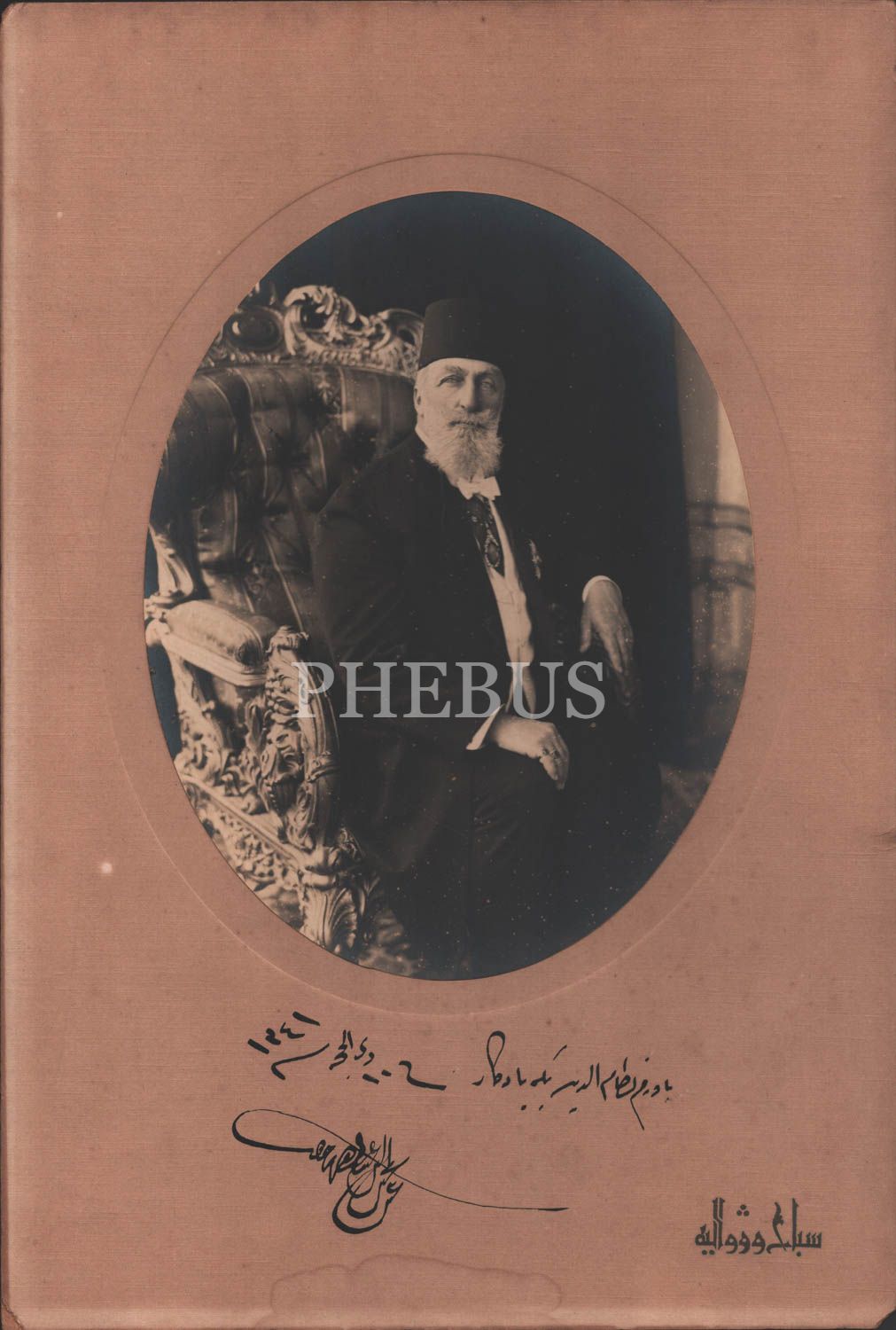 Halife-i Müslimin Abdülmecid Efendi´den Yaveri Nizameddin Efendi´ye ithaflı ve imzalı, 1341 (1923) tarihli fotoğraf, Sebah & Joaillier Fotoğrafhanesi, 25x37 cm...